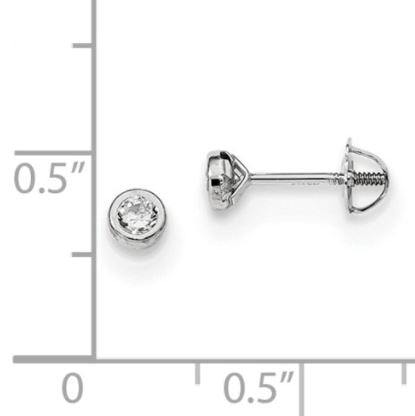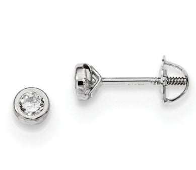 14 Karat White Gold Stud Screw Back Earrings 3.8mm Wide with 2 Round Cubic Zirconia.