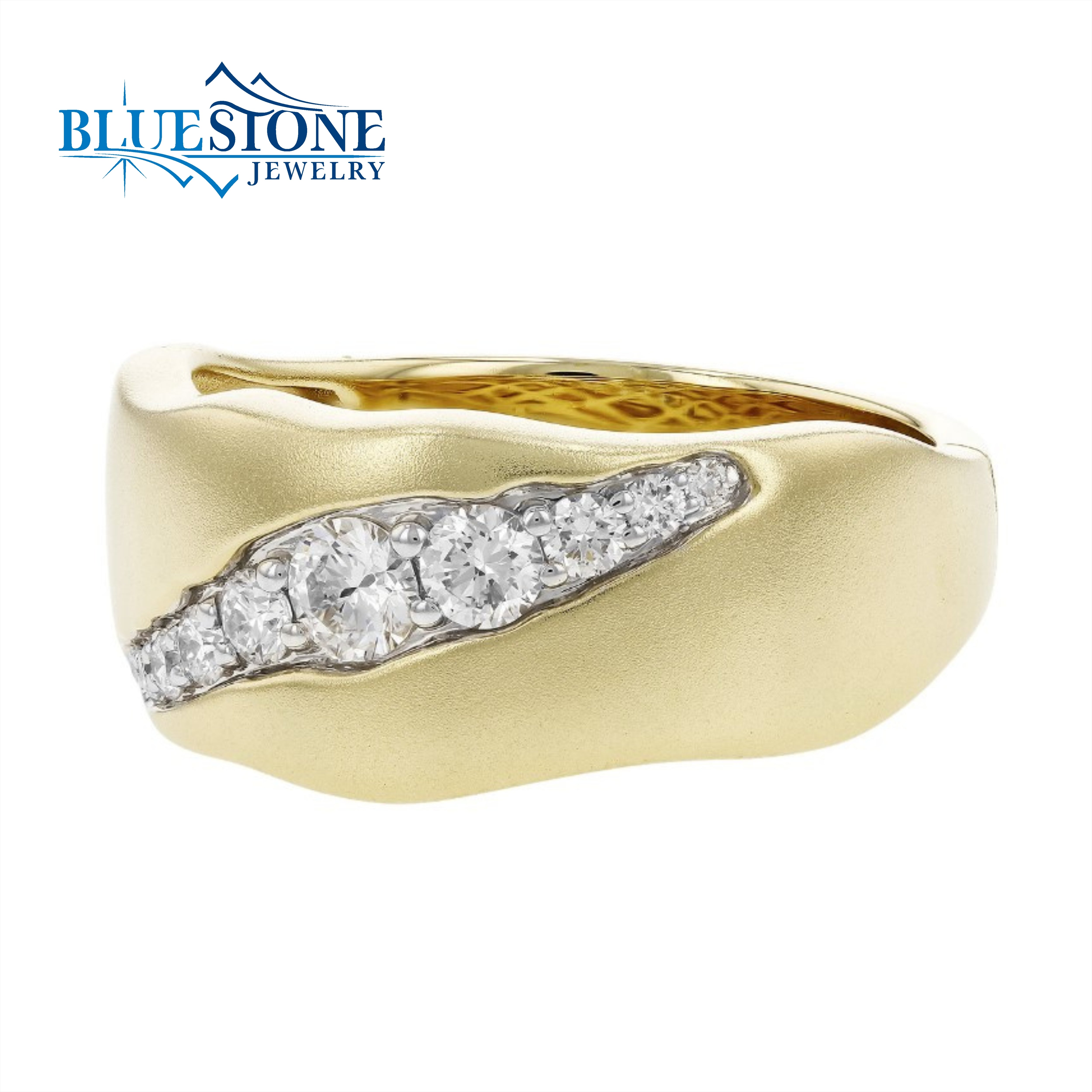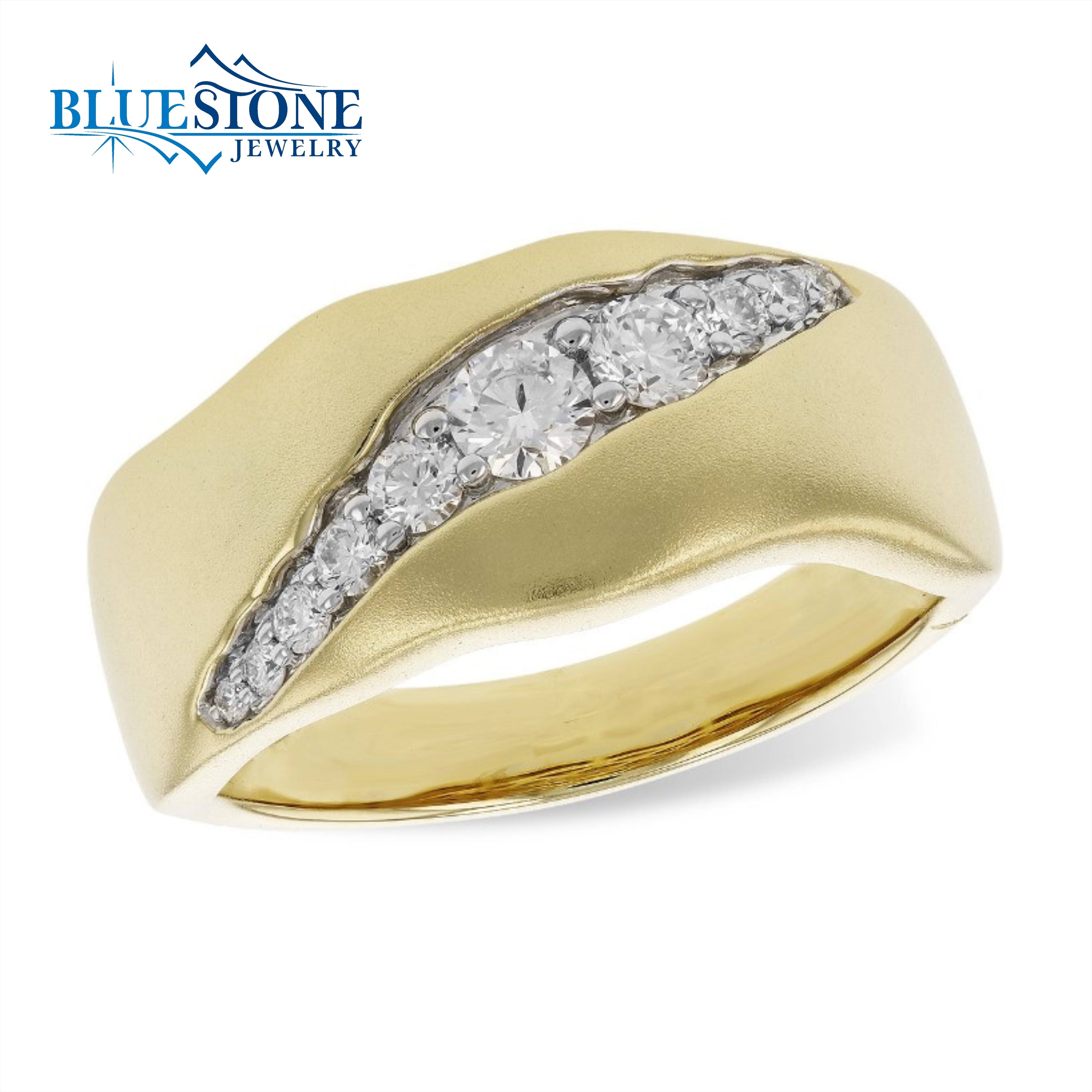 14 Yellow Gold Ring with Ten Round Accent Diamonds at 0.40 Total Carat Weight in G SI1/2 Quality. Ring Size 7.Can be ordered in other ring sizes and metal types.