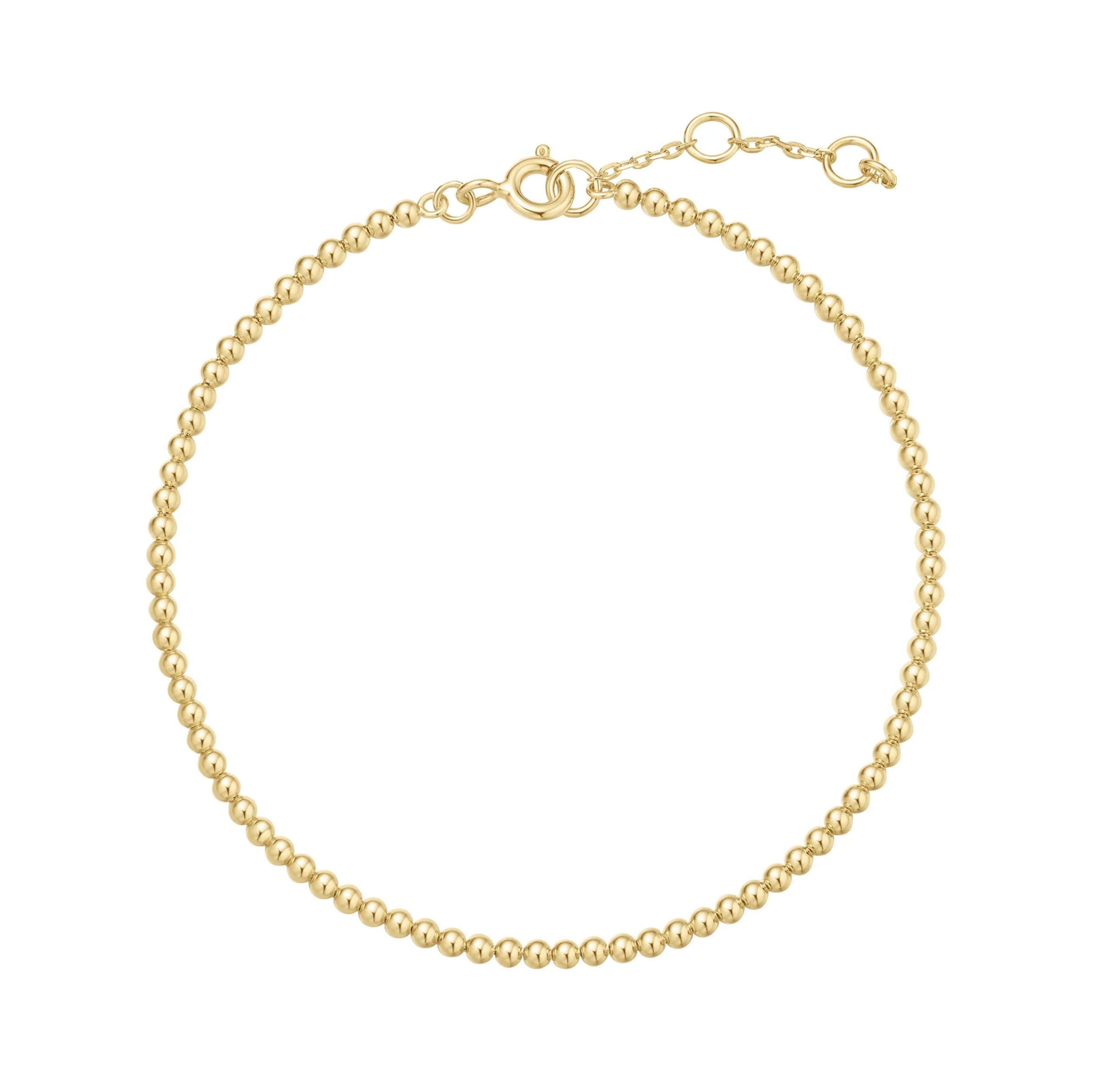 Sterling Silver with 14 Karat Yellow Gold Plating Dainty Non-Stretch 2mm Beaded Bracelet. Bracelet Measures Approximately 7.25"