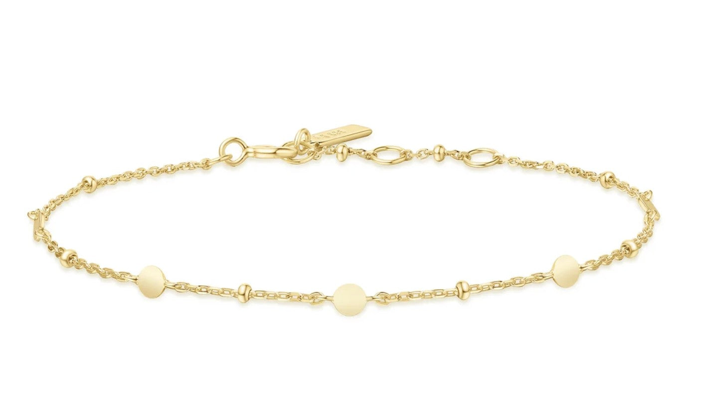 Sterling Silver with 14 Karat Yellow Gold Plating Bracelet with 5 Flat Discs and 8 Bead Details. Discs Measure Approximately 3mm.Bracelet Measures Approximately 7.25"