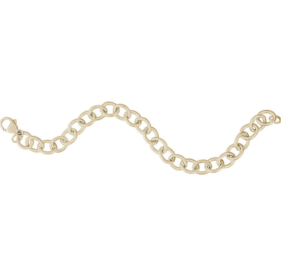 14 Karat Yellow Gold Plated Sterling Silver Open Cable Link Classic Charm Bracelet With Lobster Claw Clasp. 8mm Wide. Measuring 8 inches Long.