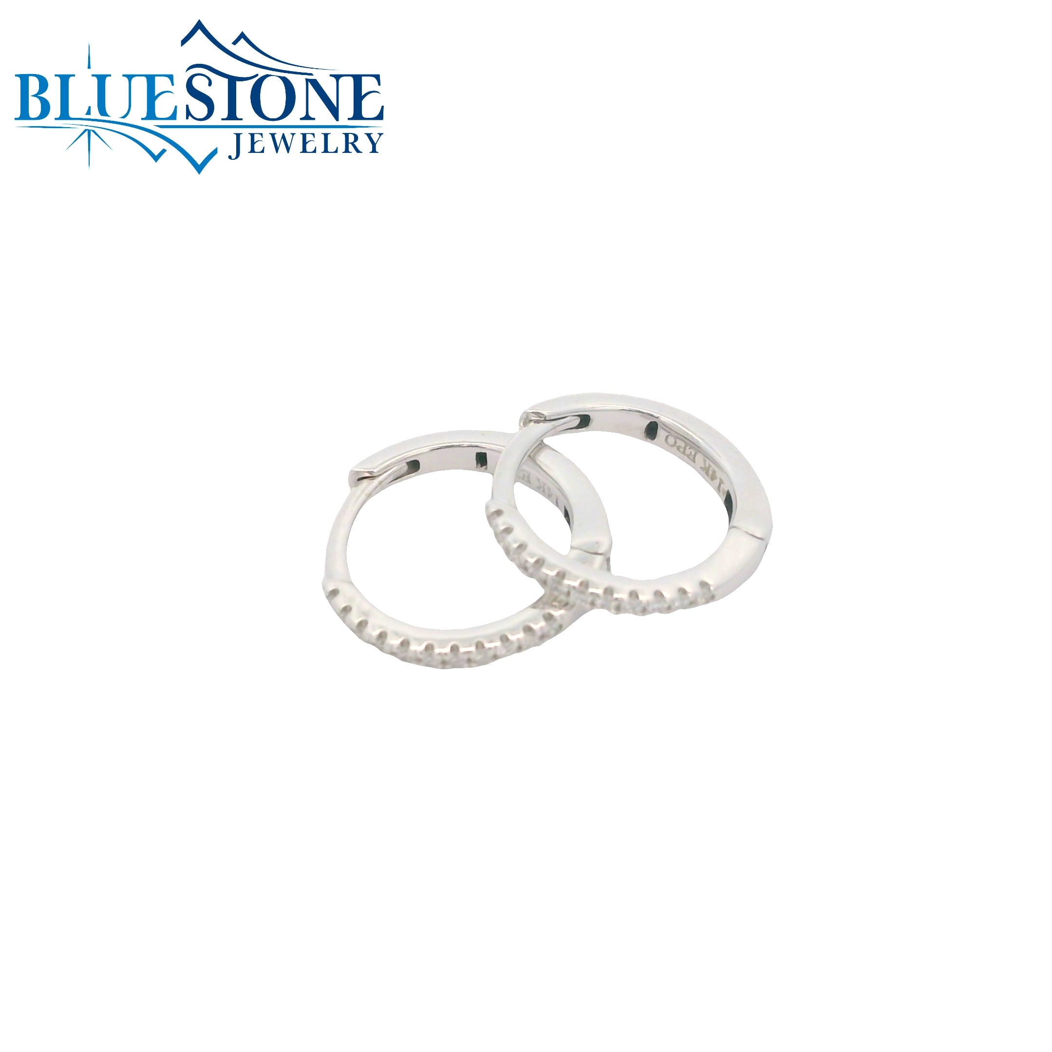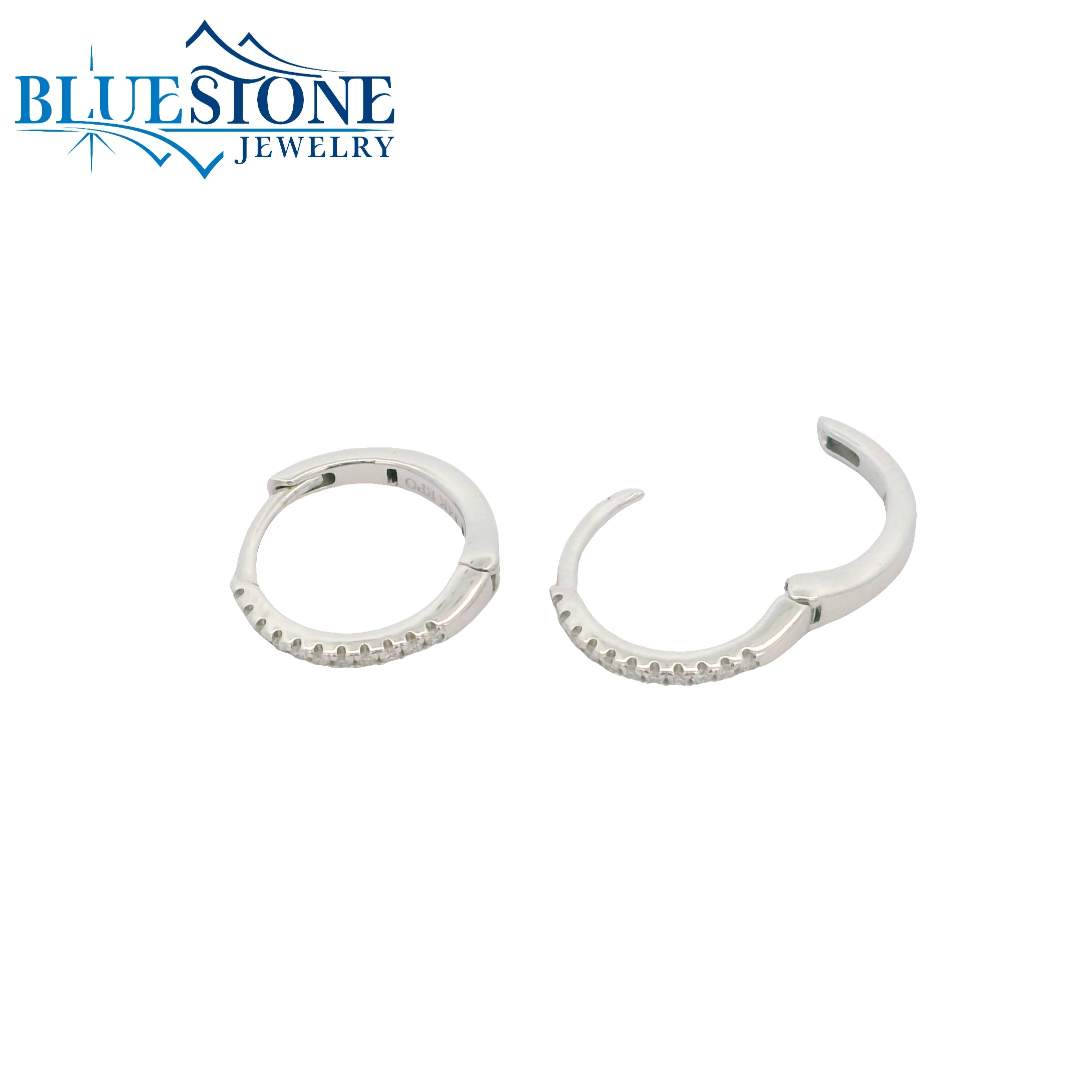 14KWG Dainty Huggie Hoop Earrings w/ 22 Diamonds - 12mm