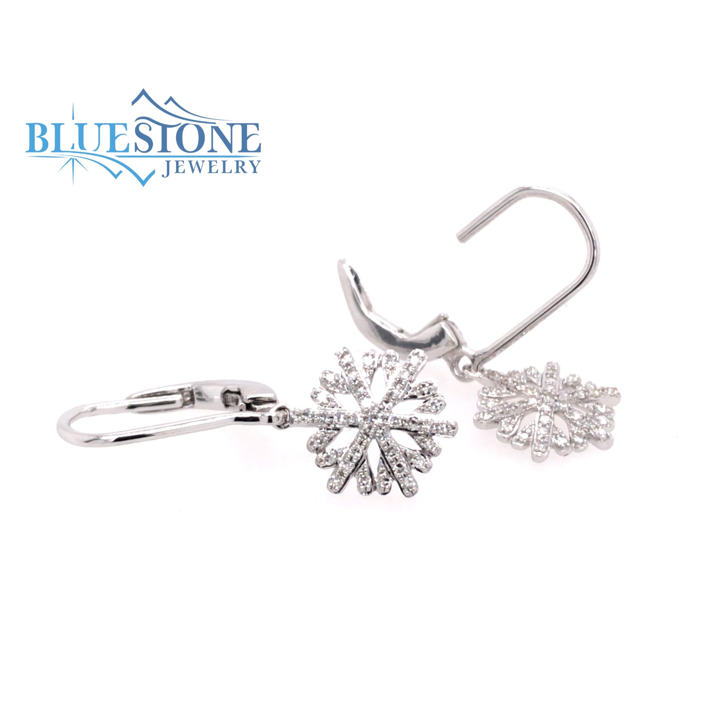 14 Karat White Gold Lever-back Snowflake Earrings with 0.18 Carats Total Weight of Round G Si1 Diamonds.