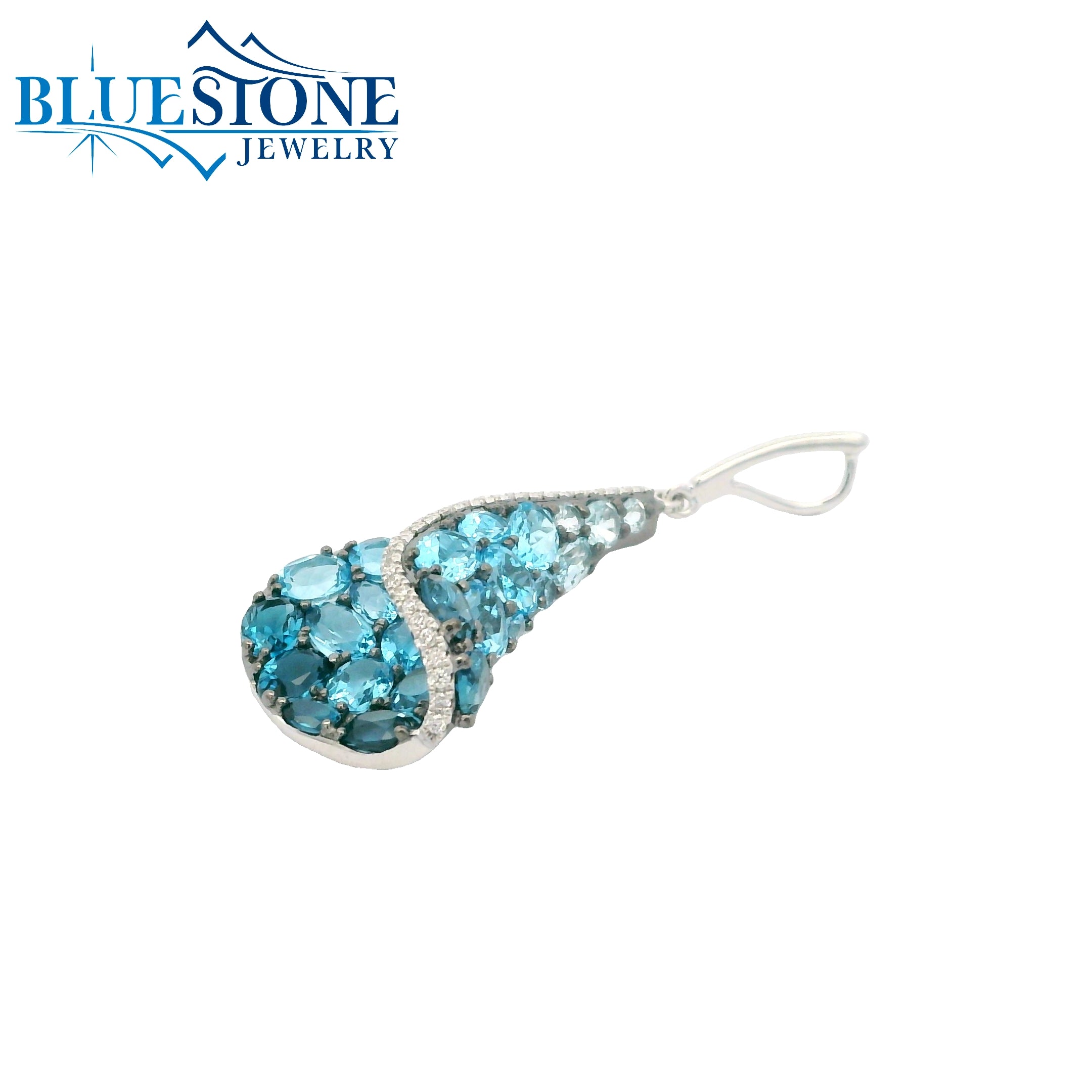 Small 14KWG Pendant with Various Blue Topaz & Diamonds