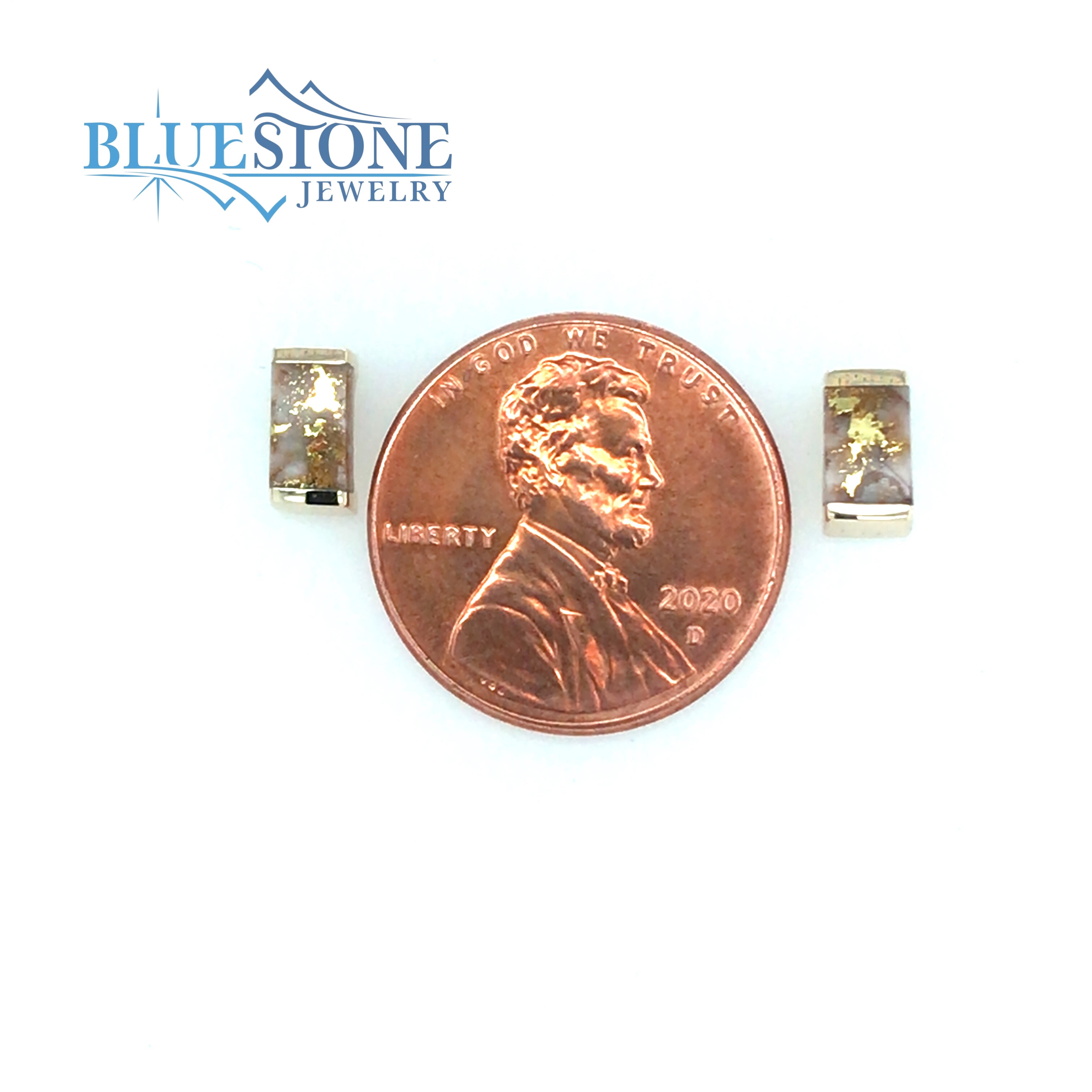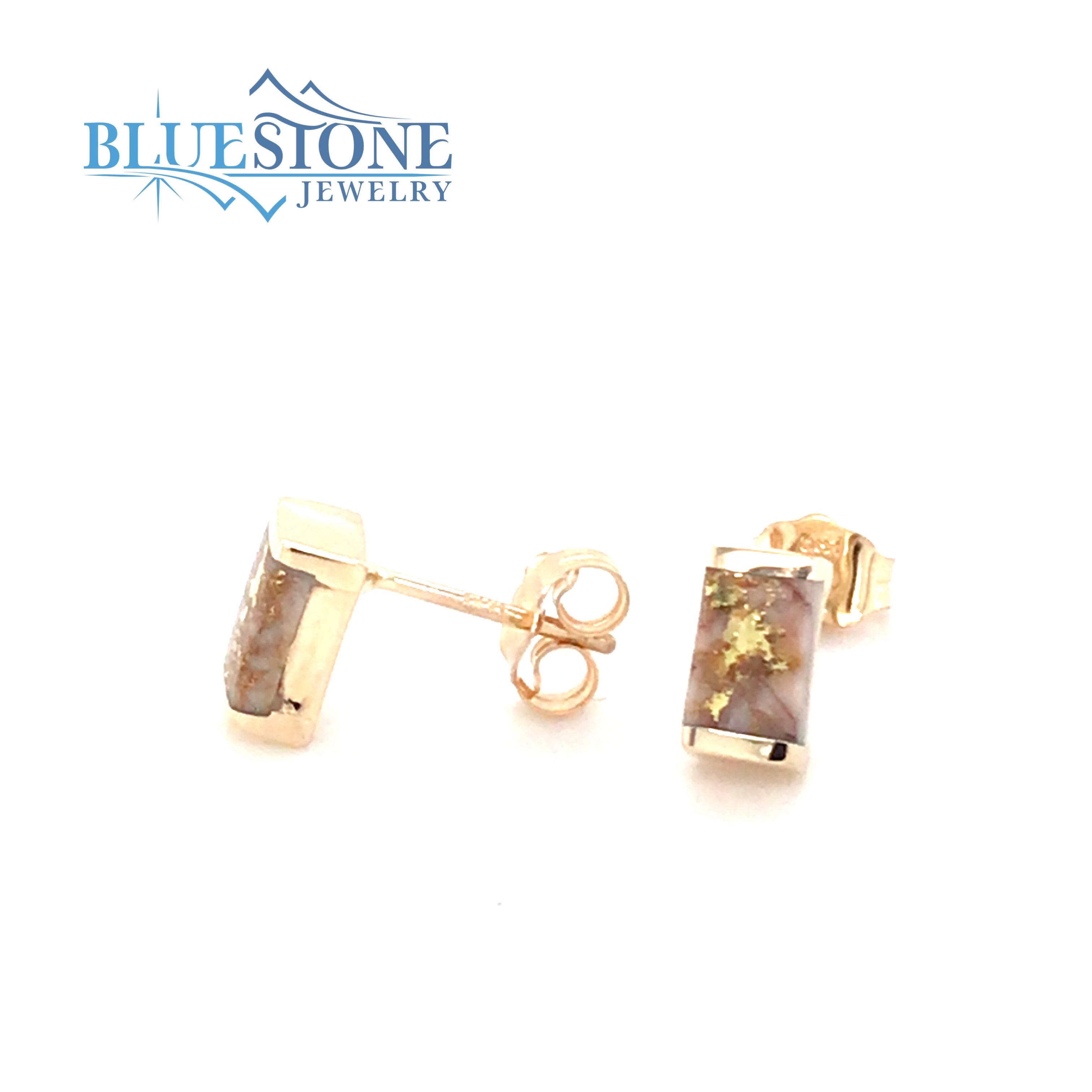 14 Karat Yellow Gold Stud Earrings with Two 6 x4mm Rectangular Cut Gold Quartz Gemstones from the Local Sixteen to One California Mine within the Tahoe National Forest, CA.