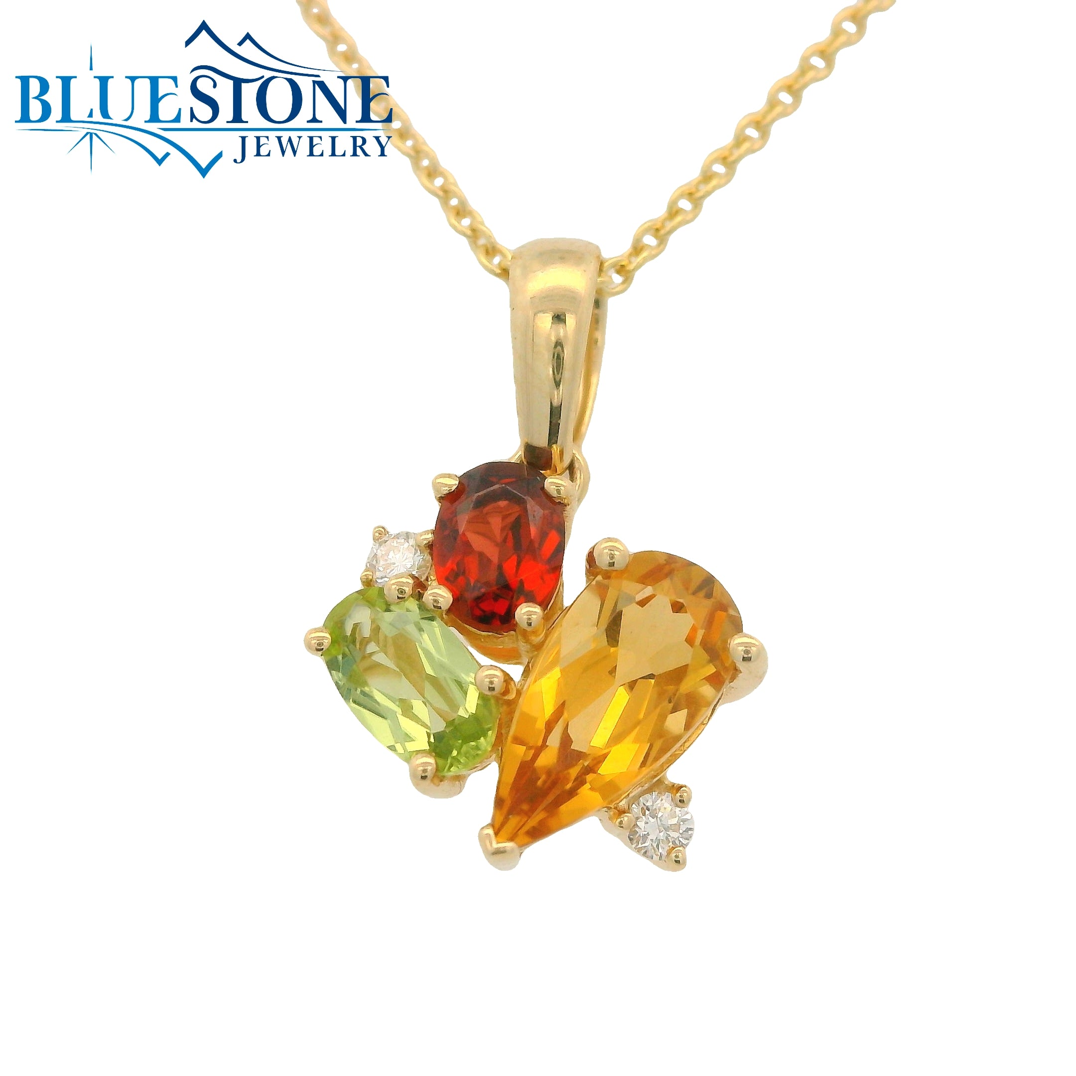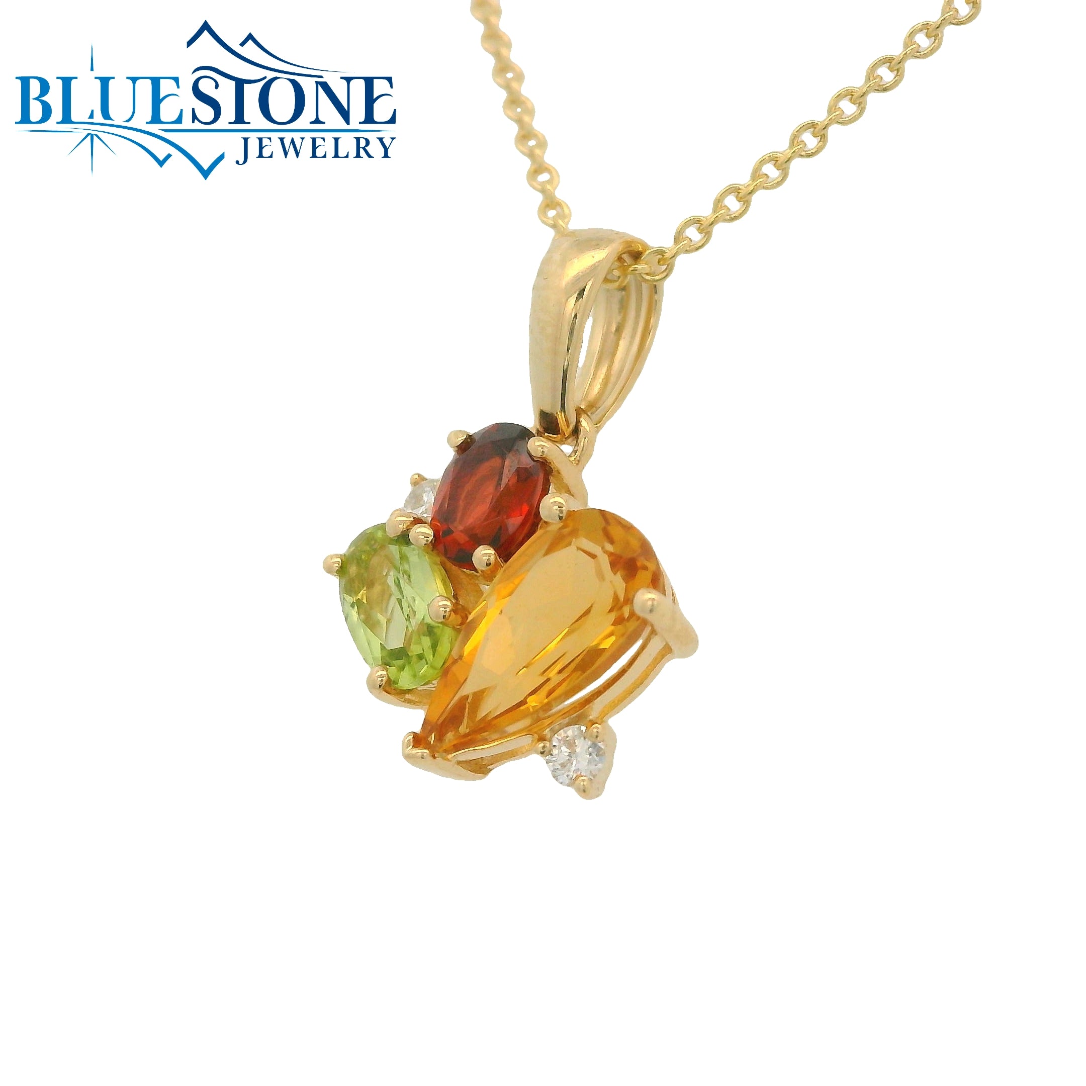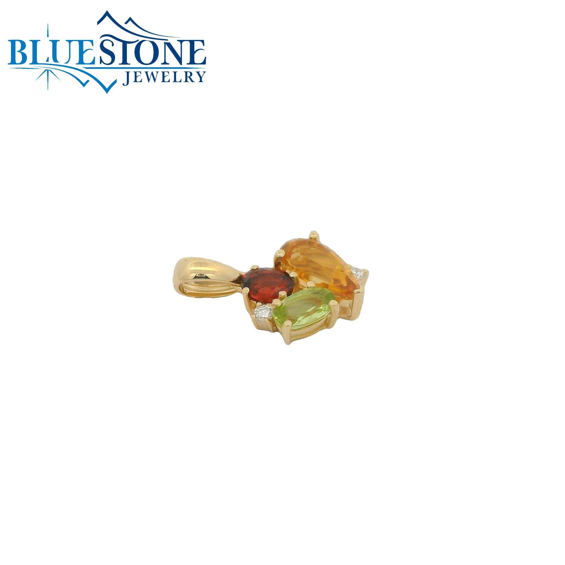 14KYG Cluster Pendant w/ Garnet, Peridot, Citrine & Diamonds
