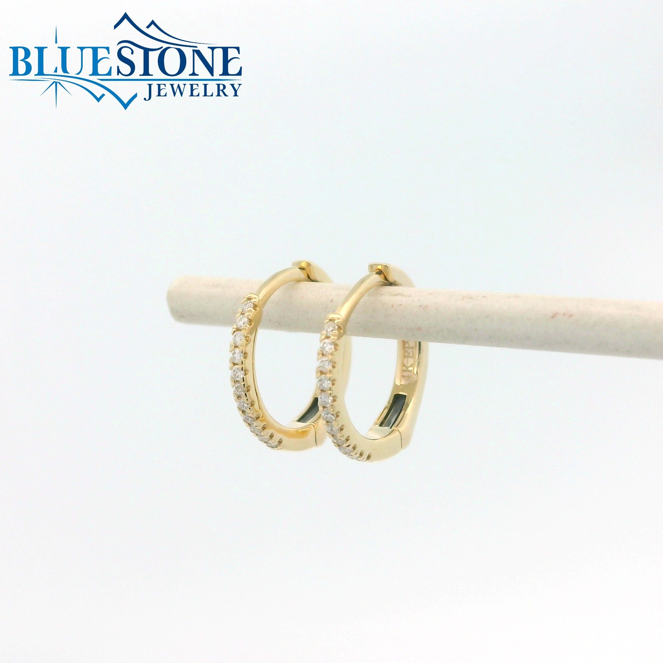 14KYG Huggie Earrings w/ 22 Diamonds - 12mm