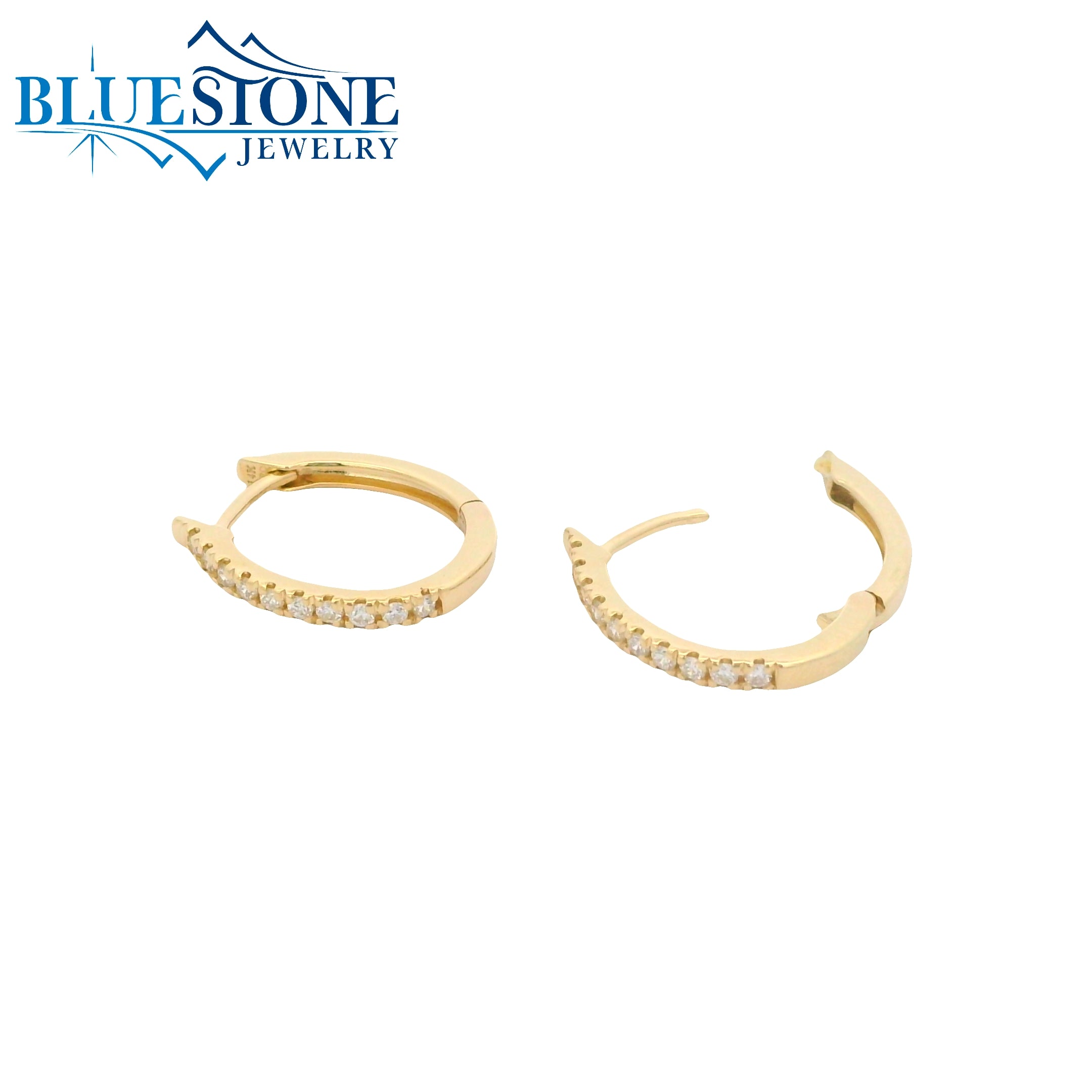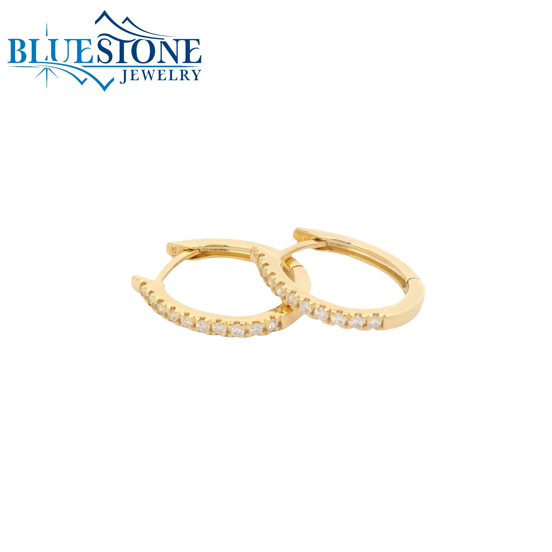 14KYG Oval Huggie Earrings w/ 20 Diamonds - 14.1mm