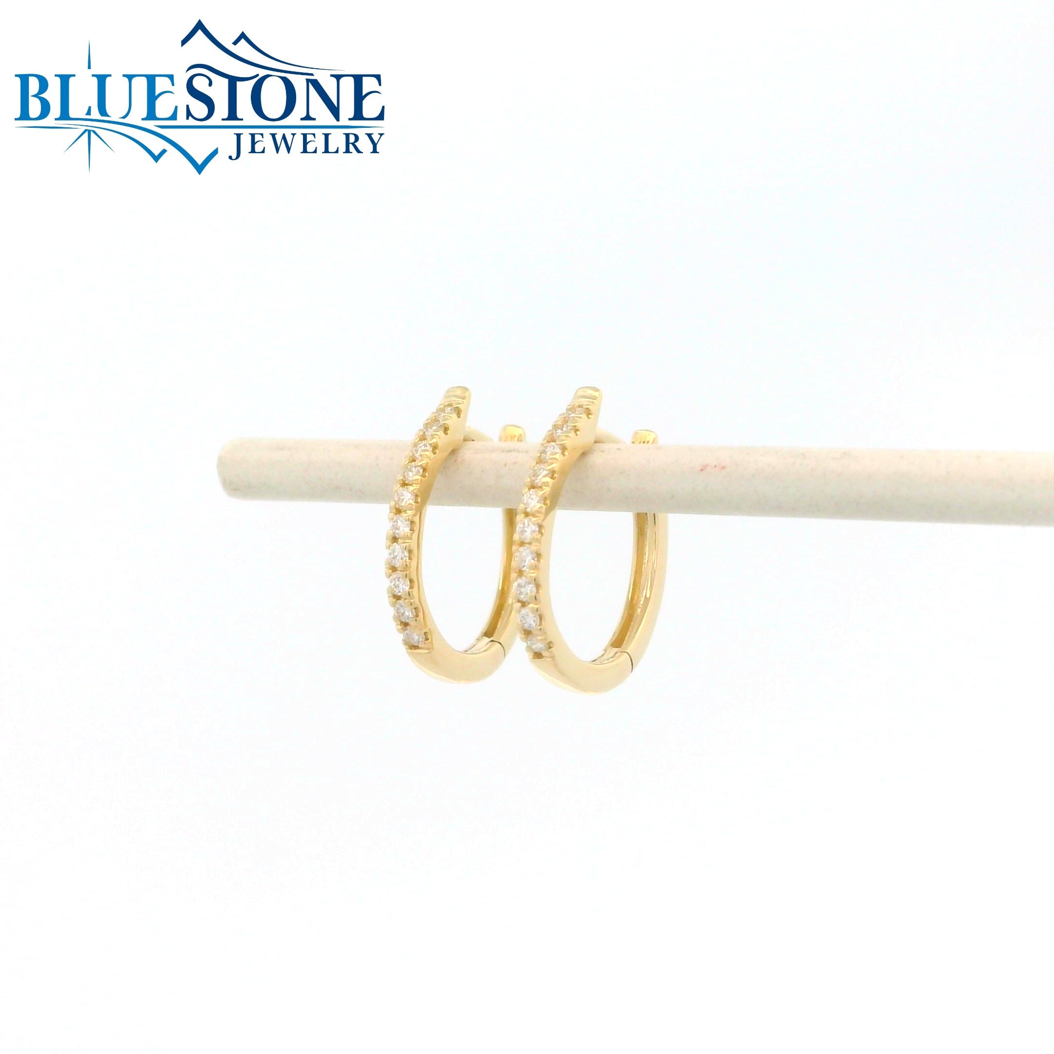 14 Karat Yellow Gold Dainty Oval Huggie Hoop Earring with 20 Natural Diamonds at 0.14 Carat Total Weight. Earrings Width Measure 1.6mm and 14.1mm Tall.Earrings Weight 1.4 Grams.