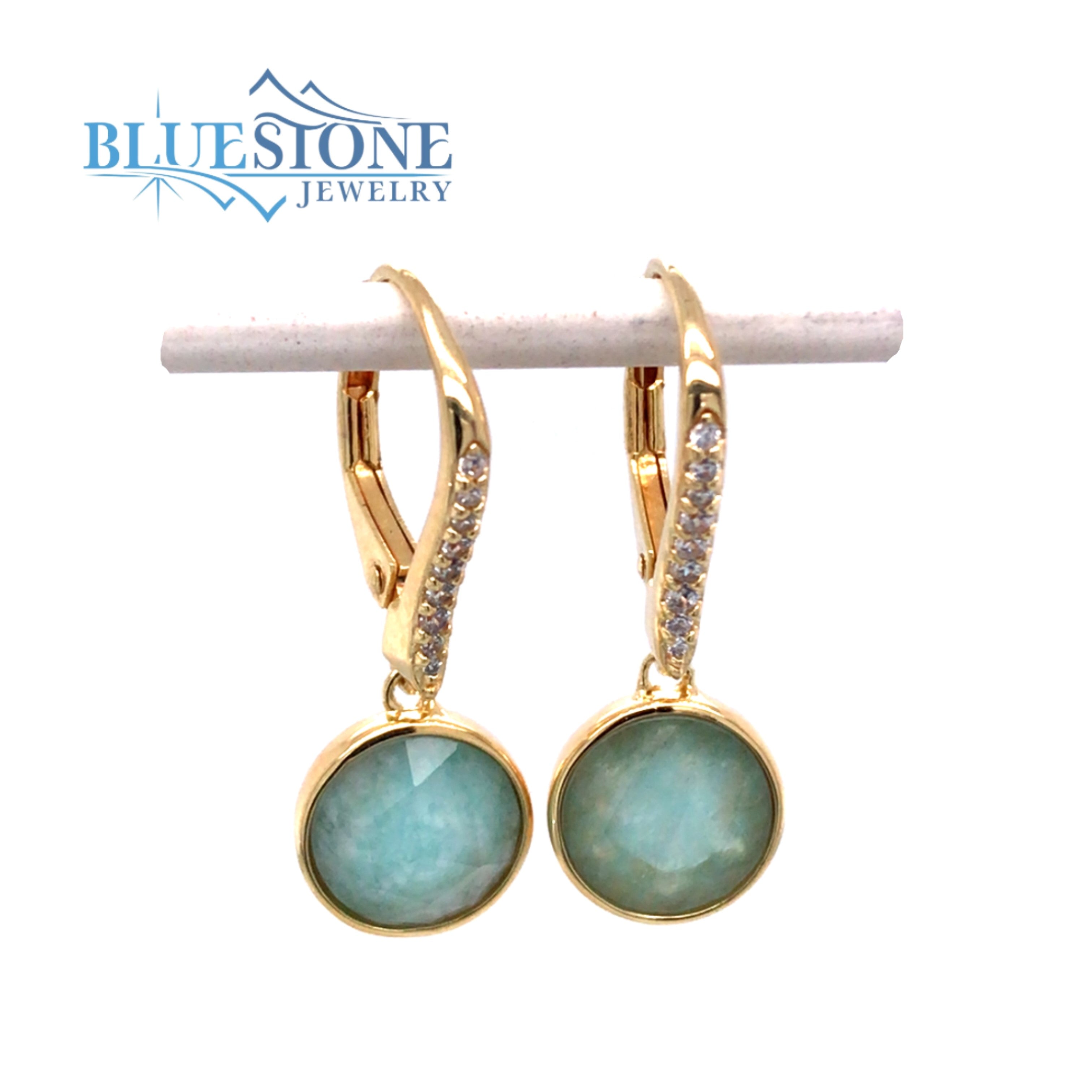 14KYG Plated Lever Back Earrings with Amazonite and CZs