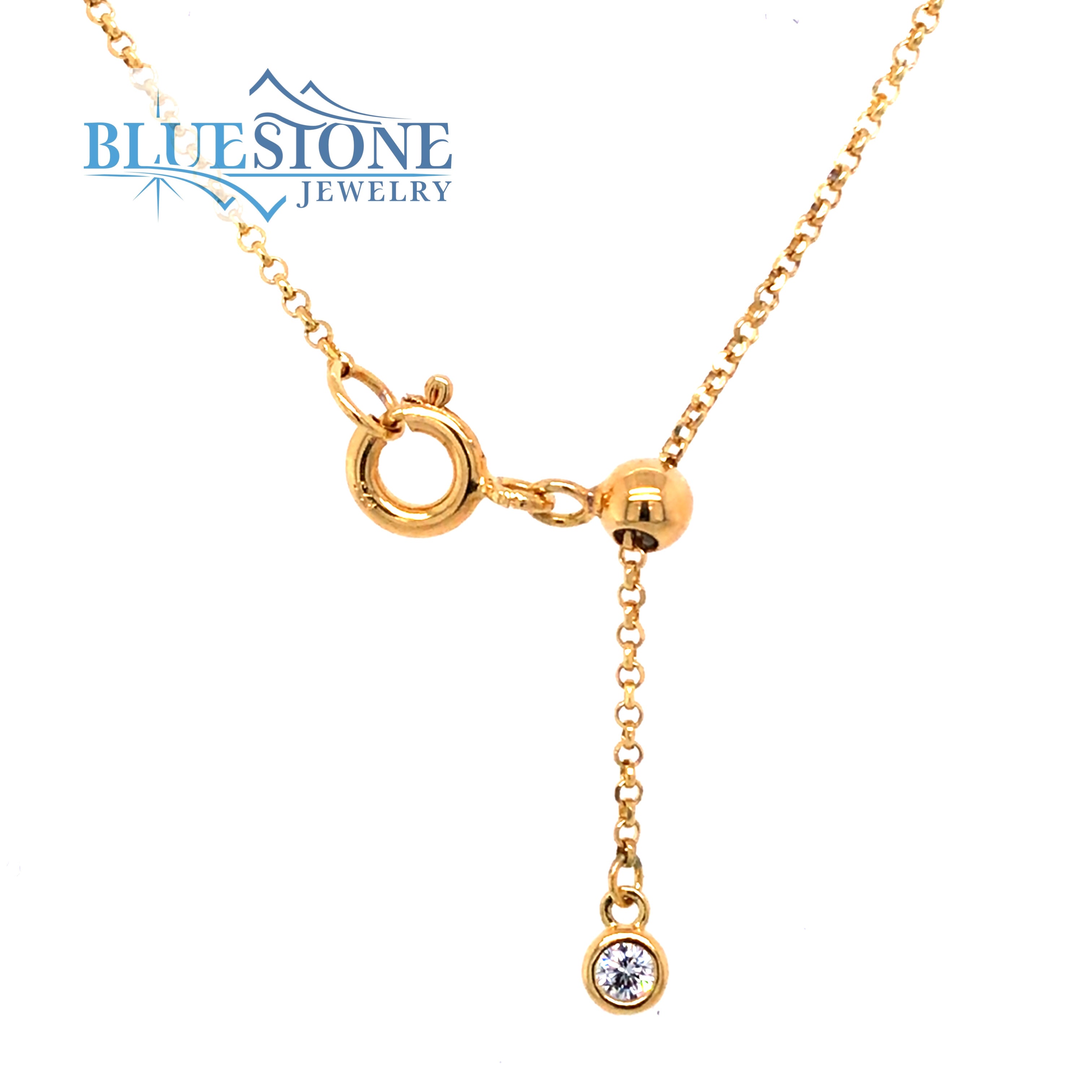 Sterling Silver with 14 Karat Yellow Gold Plating Adjustable Necklace with One 9mm Wide Natural Peruvian Amazonite Topped with Faceted Quartz and 6 Cubic Zirconias. Chain Measures 20 Inches Long. Tension slider allows chain to be worn at various lengths,