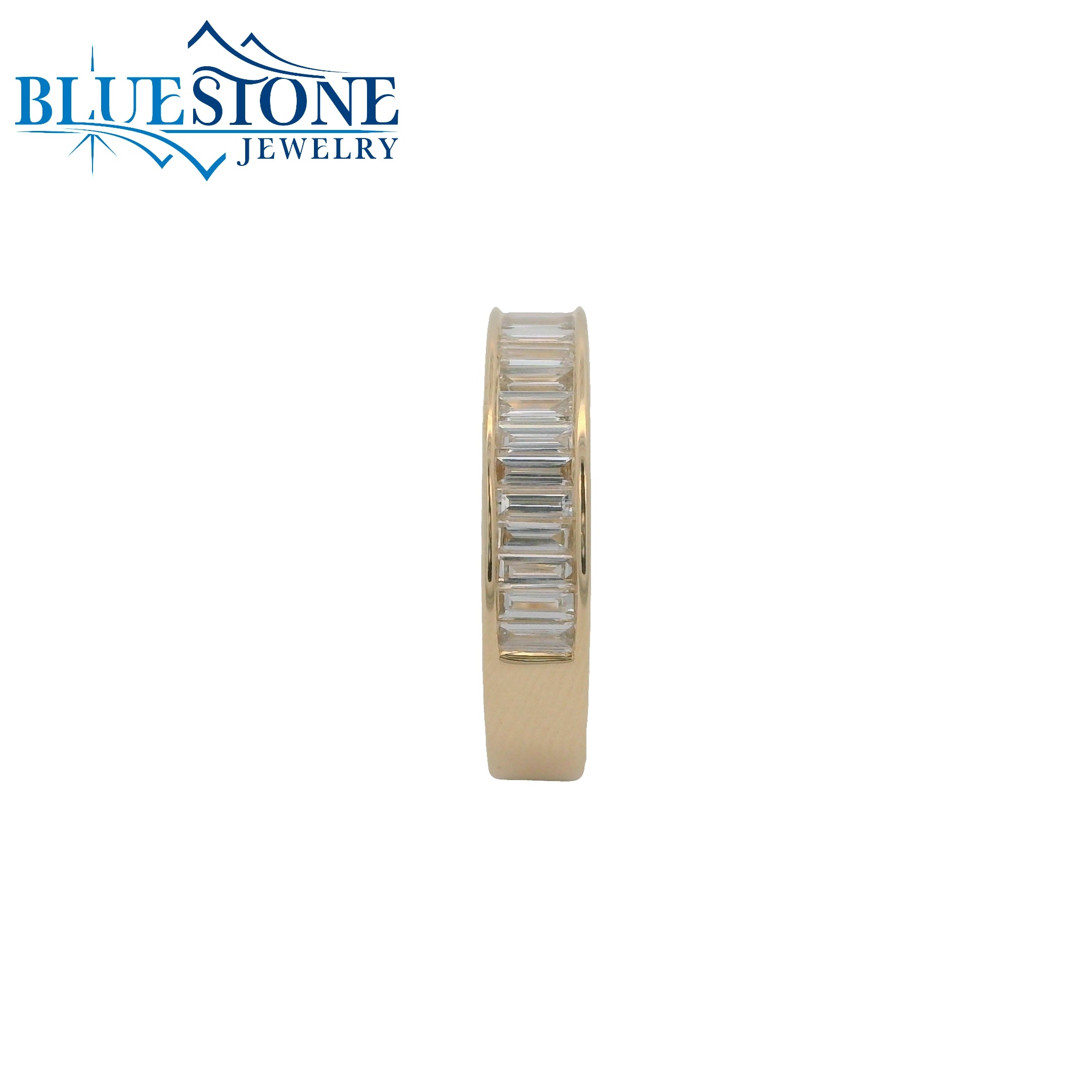 14 Karat Yellow Gold Ring with Channel Set Natural Baguette Diamonds at 0.70 Carat Total Weight at G VS1 Quality. Ring Size 7. Ring Measures 4.3mm Wide. Available in Other Metal Options.