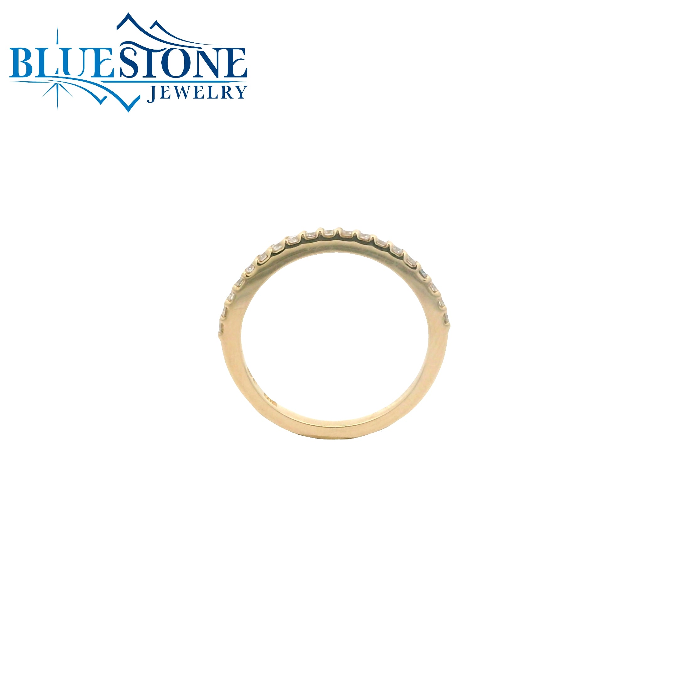 14 Karat Yellow Gold Shared Prong Stacking Band with19 Round Natural Diamonds at 0.24 Total Carat Weight.Diamonds Measure Approximately 0.6mm.Ring Measures Approximately 1.7mm Wide.Ring Size 6.25