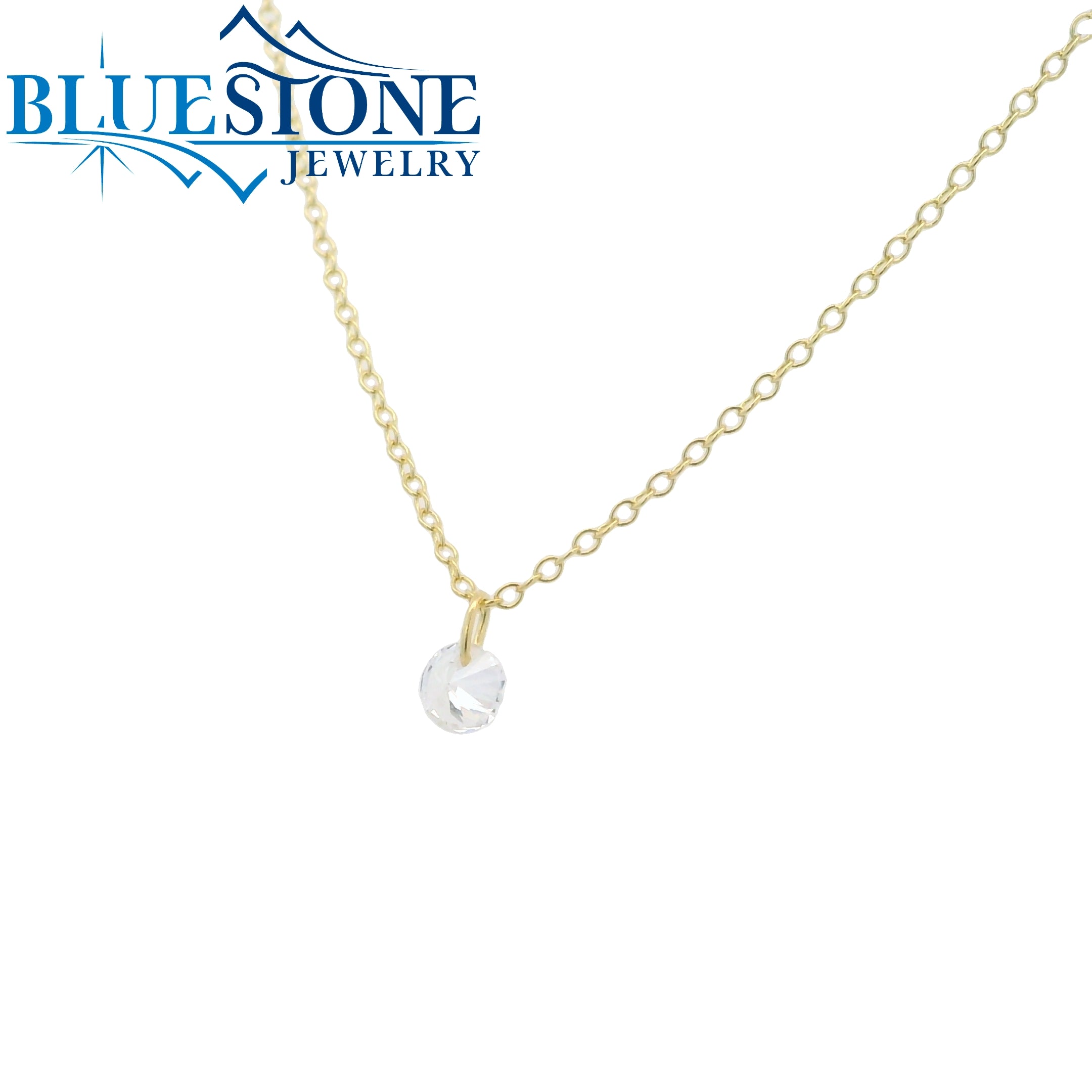 Sterling Silver and 18K Gold Plated Dainty Cable Chain Necklace with One 4.5mm Round Cubic Zirconia Gemstone with Bail Drilled Through Stone. Chain Measures 16 Inches with an Additional 2 Inch Extender.