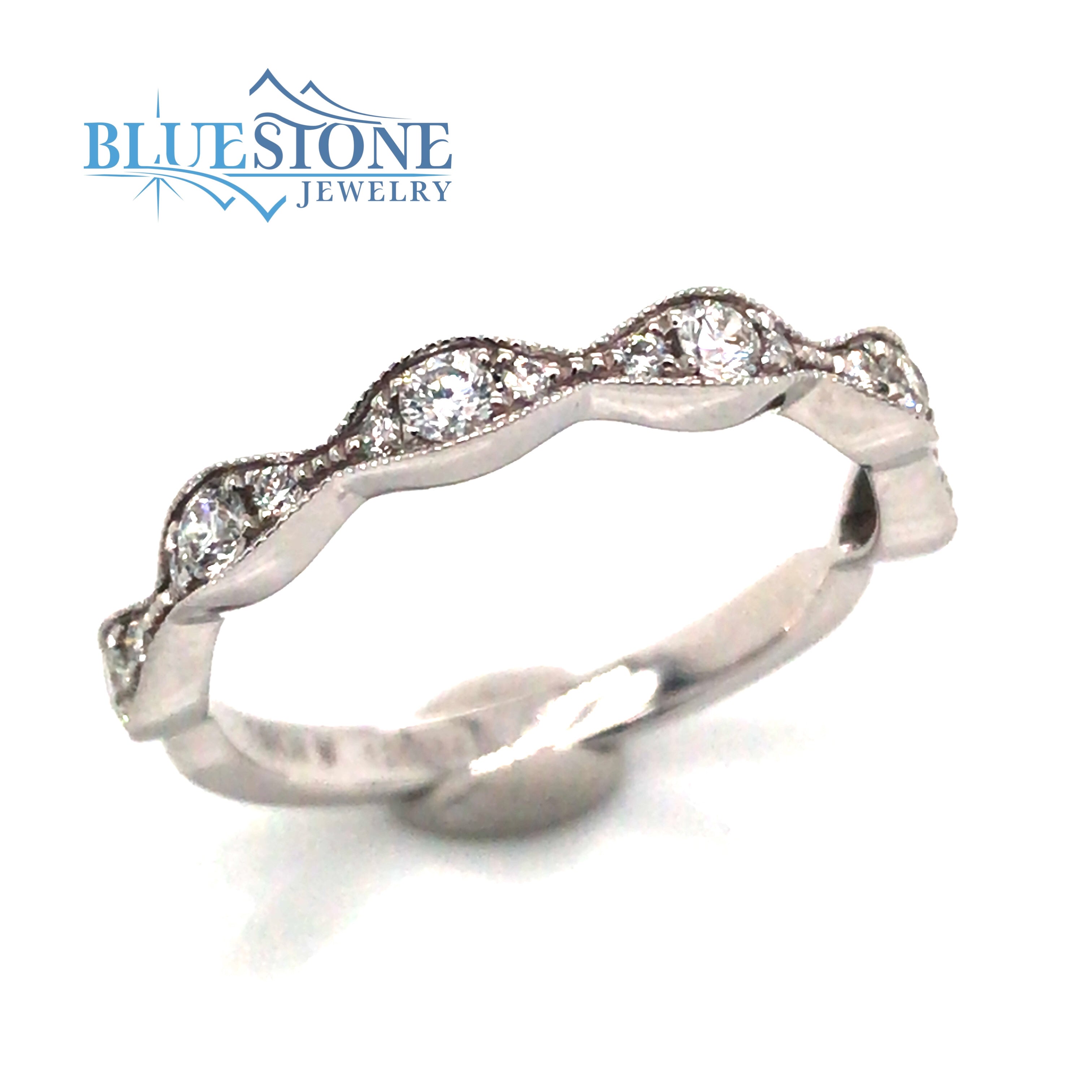 18 Karat White Gold Wedding Band or Fashion Ring with 18 Round Diamonds at 0.35 Carats Total Weight G SI Quality Diamonds.Ring Size 6.75***Can be made in different metal options and sizes***Pricing may vary***