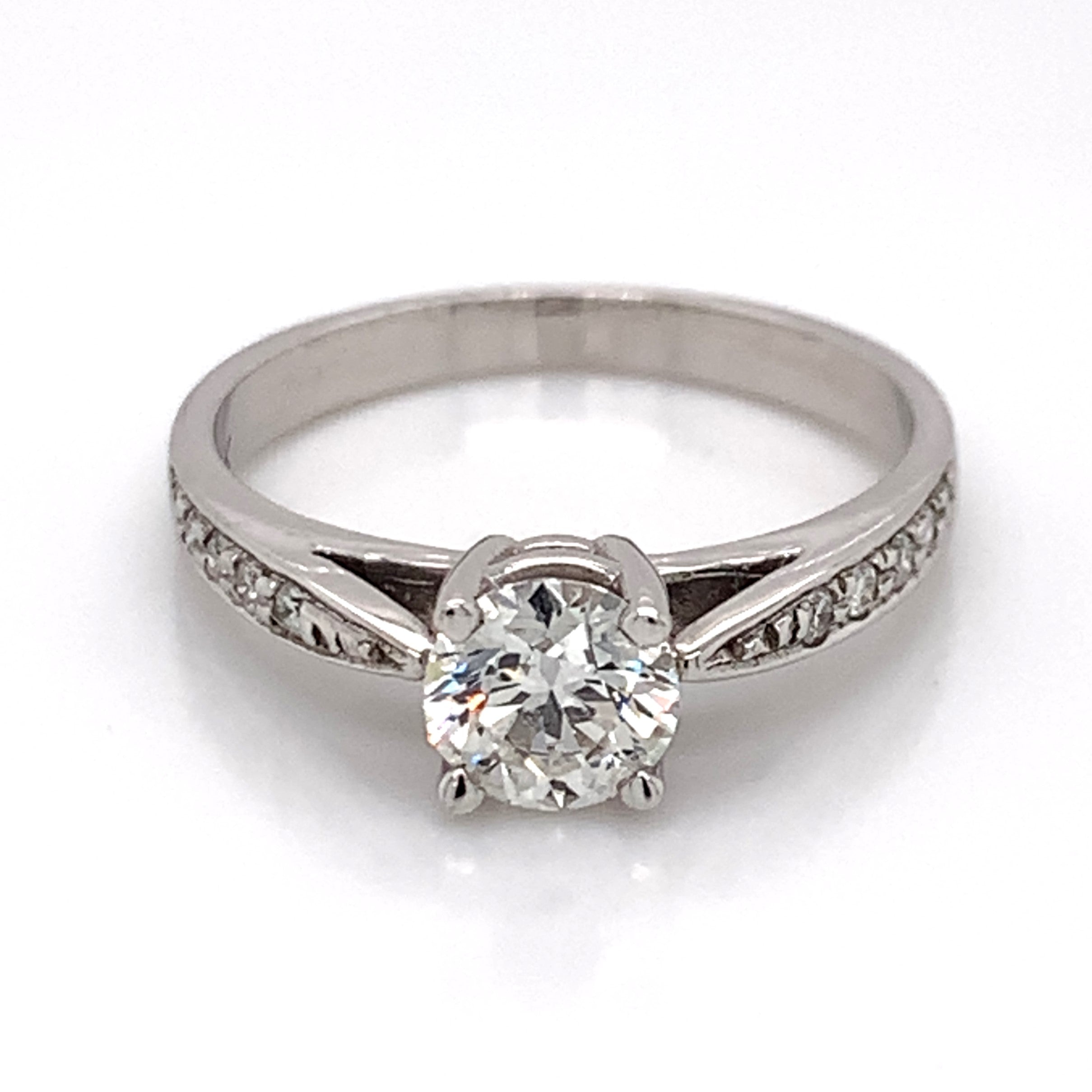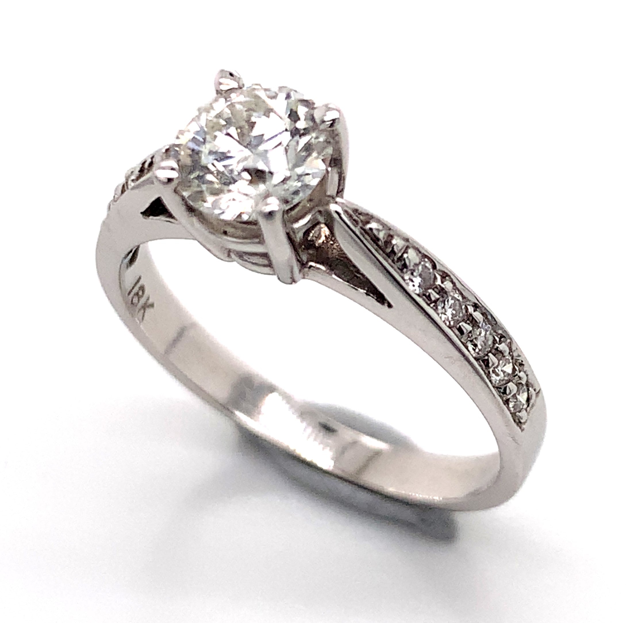 18K White Gold Engagement Ring w/ 0.72ct Round Diamond Center Stone