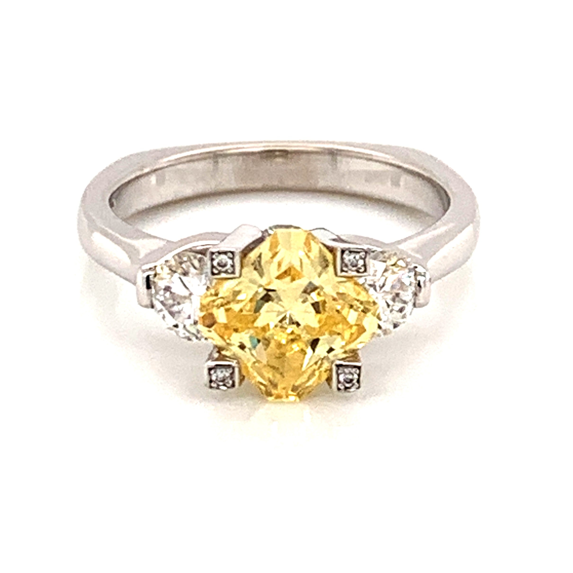 18K White Gold Engagement Ring with Yellow CZ & Diamonds-Size 7**30%OFF**