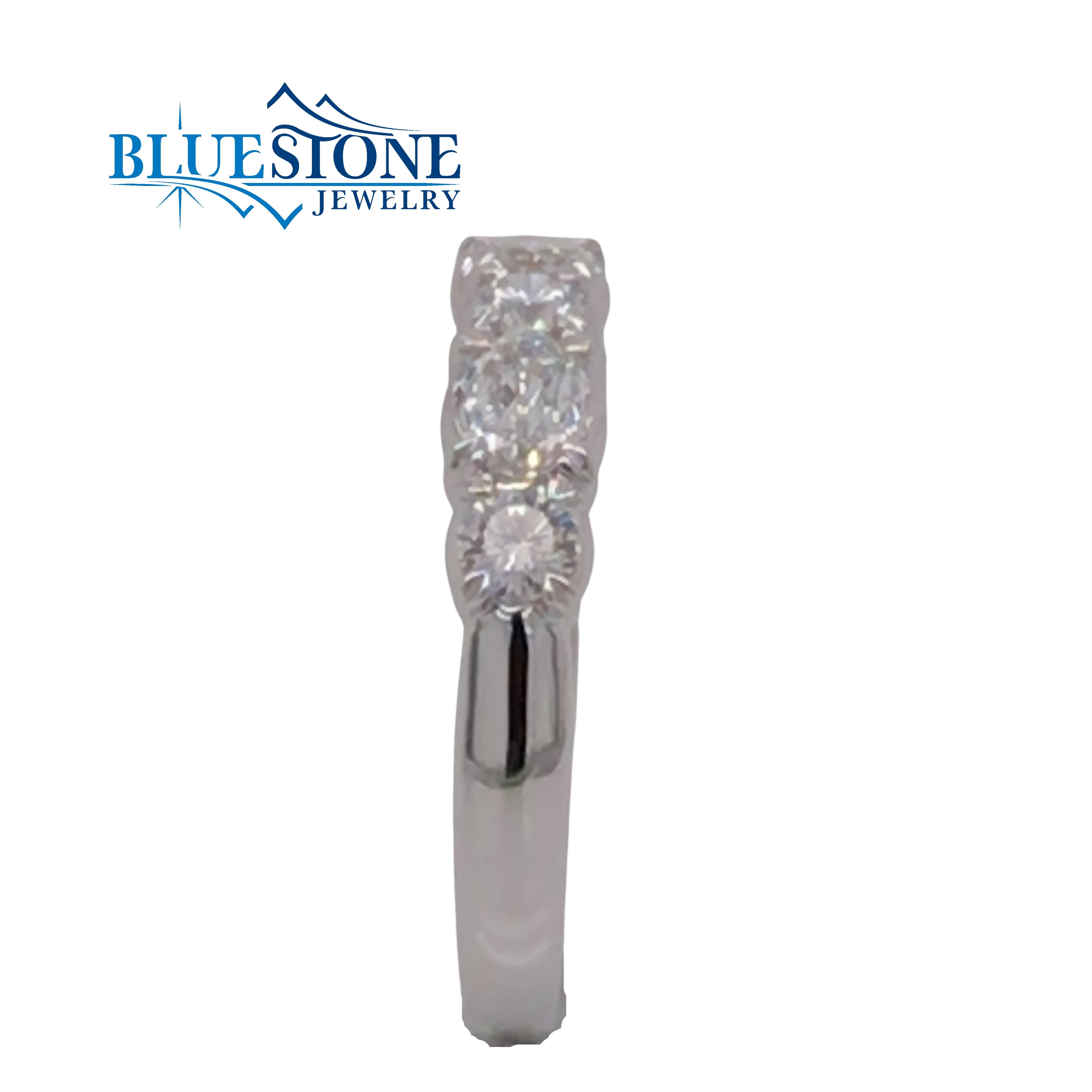 18 Karat White Gold Fashion Ring or Wedding Band with 3 Specialty Oval/Emerald Cut Diamonds at 0.62 Carats Total Weight and 4 Specialty Round Cut Diamonds at 0.42 Carats Total Weight at E color SI2 clarity quality diamonds.Ring Size 6.5 at an overall finished weight of 3.7 grams.Overall Diamond Weight is 1.04 Carats.Serial# V01702Specialty Oval/Emerald Cut face up to 50% larger than traditional Oval or Emerald Cut Diamonds.Specialty Round Cut Diamonds have 109 facets compared to the traditional Round Cut Diamond.