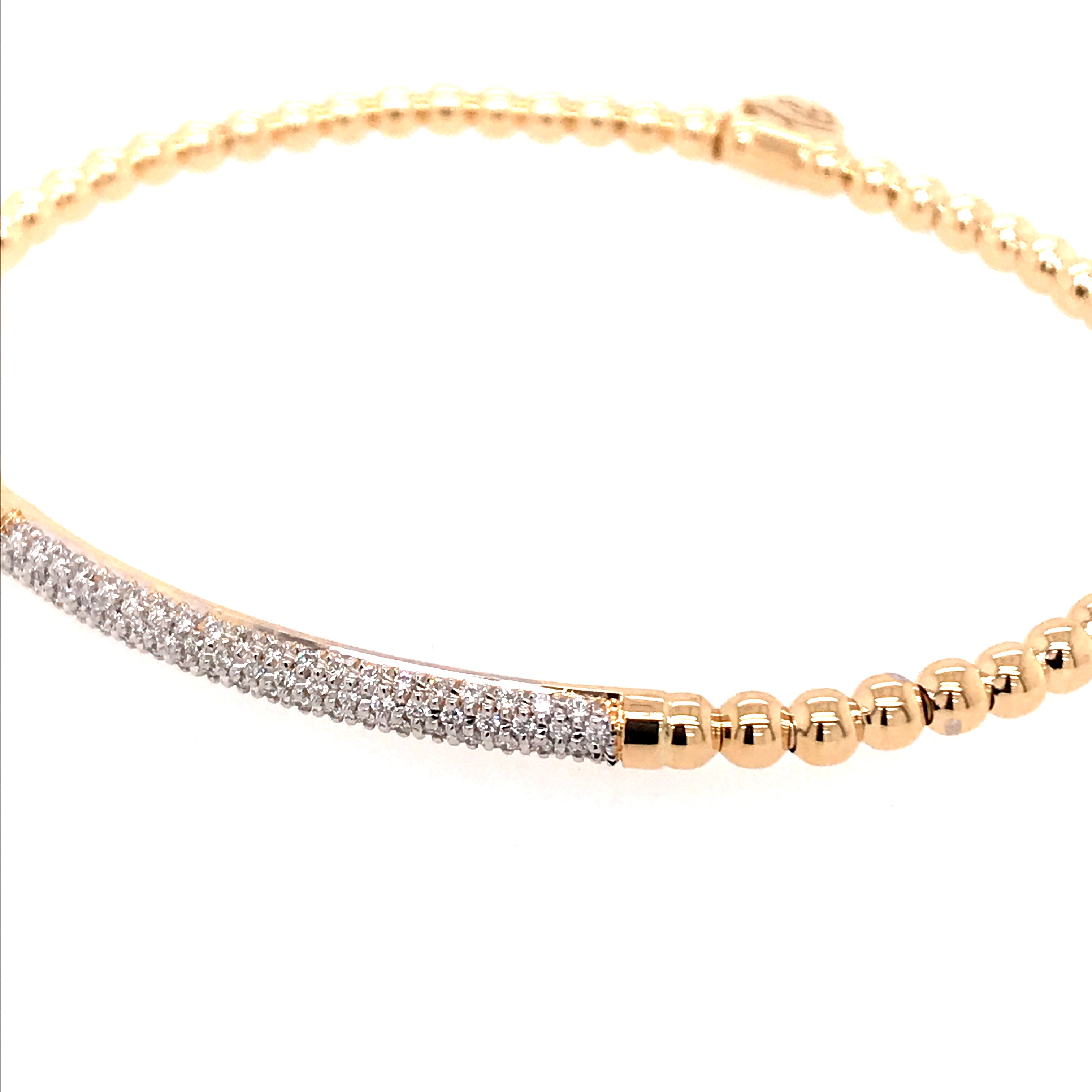 18 Karat Yellow Gold Stretchable Bracelet with 80 Round Diamonds at 0.32 Carats Total Weight F/G VS/SI16.3 inches in length (16cm).6.6 Grams in overall finished weight.Other sizes are available. Please inquire.