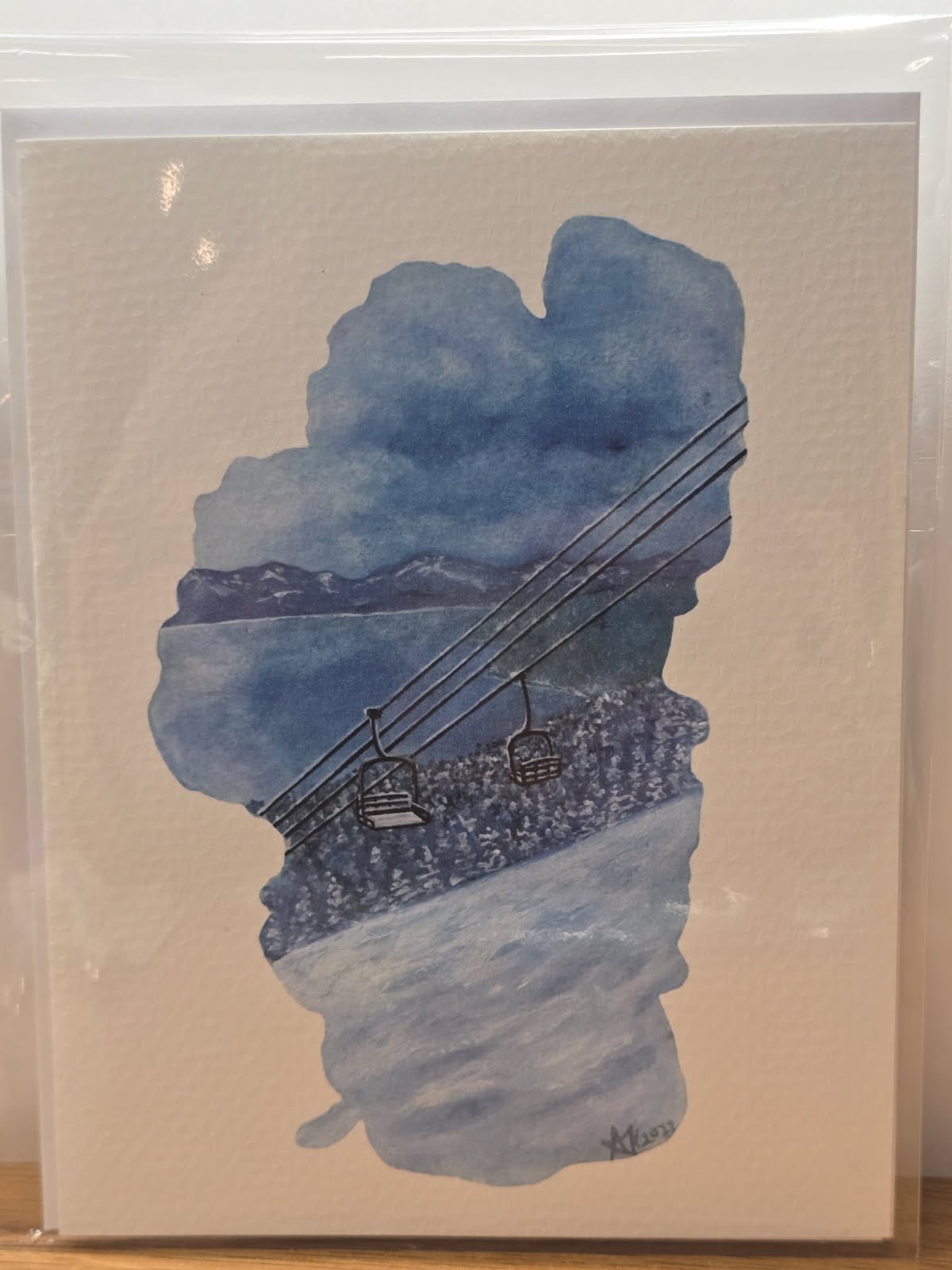 4.5 X 5.75 Watercolor Greeting Card with original Tahoe artwork handmade by local artist Alexandra Theiss