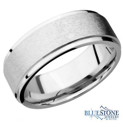 8mm Cobalt Band with Flat Grooved Edges. Middle section has Angle Stone Finish and Edges are Polished.Ring Size 10Can be special ordered in other ring sizes. Please inquire for more information.