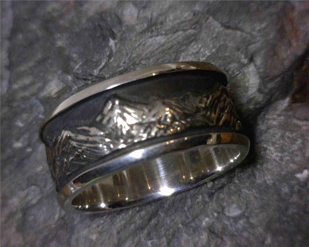 Argentium Silver Hand Carved Tahoe Truckee Mountain Ring size 14.510mm WidthBluestone Jewelry Exclusive Design.