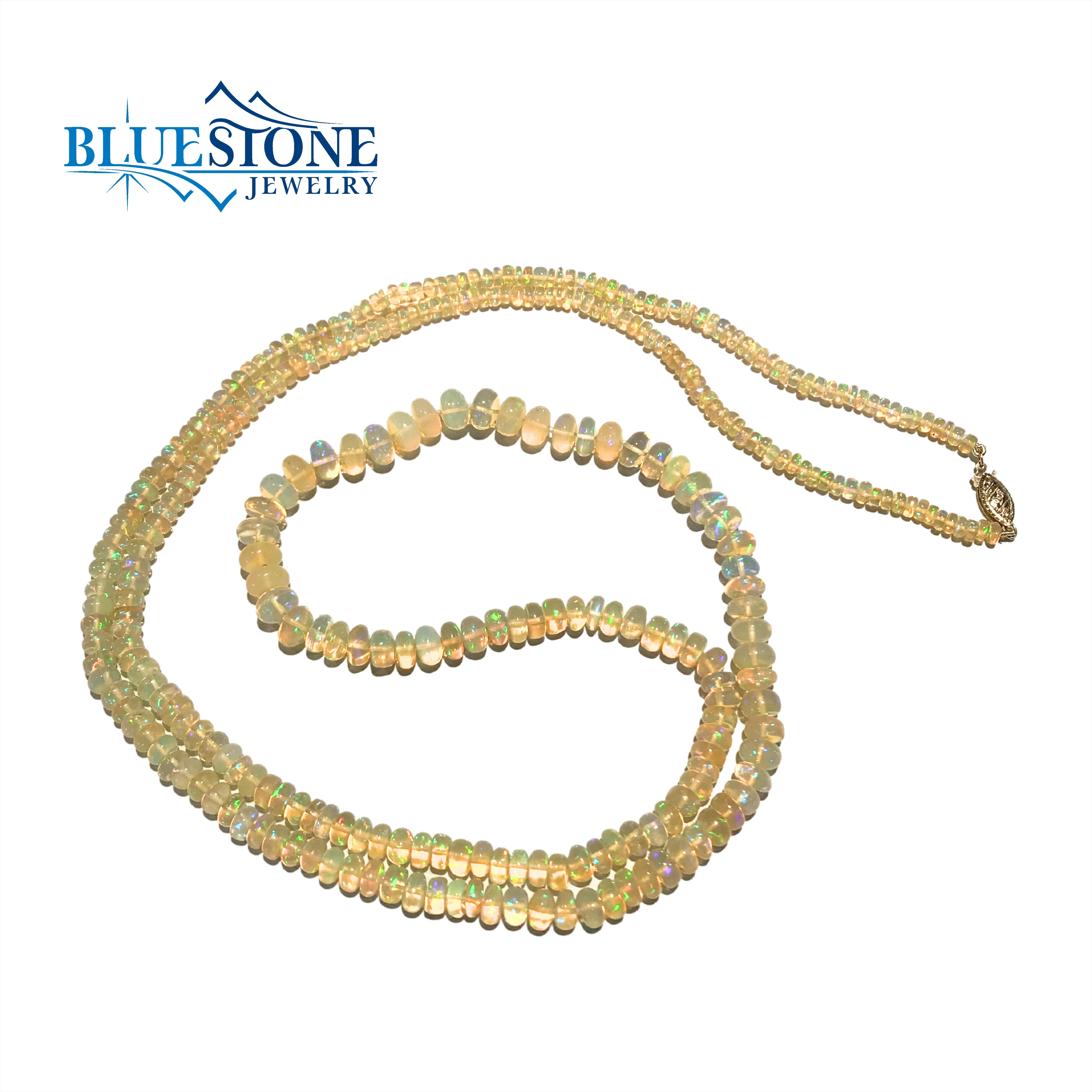 Beaded Smooth Cut Ethiopian Opal Graduated Necklace with 14 Karat Gold Clasp, 36 Inches in Length.Local Lake Tahoe Designer.