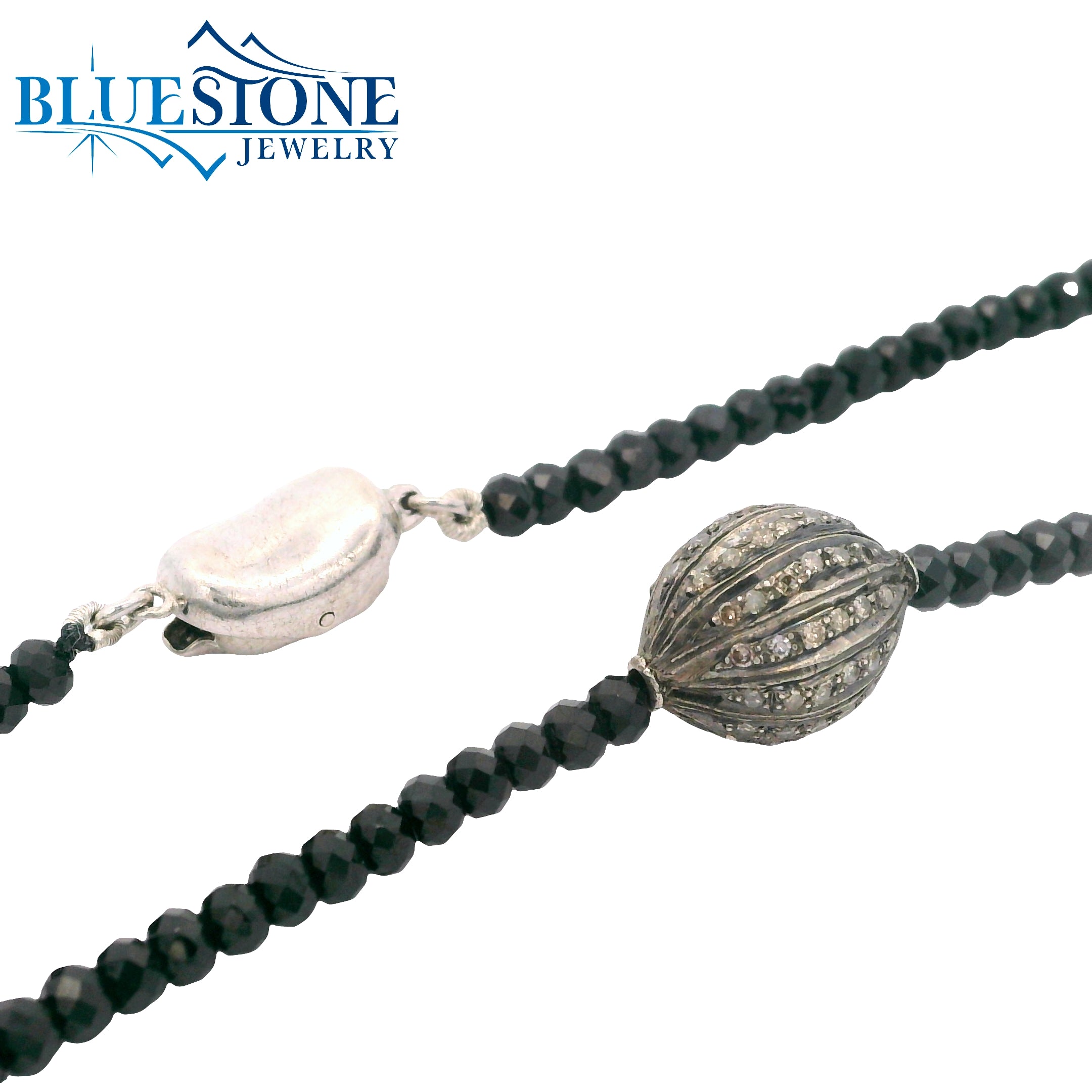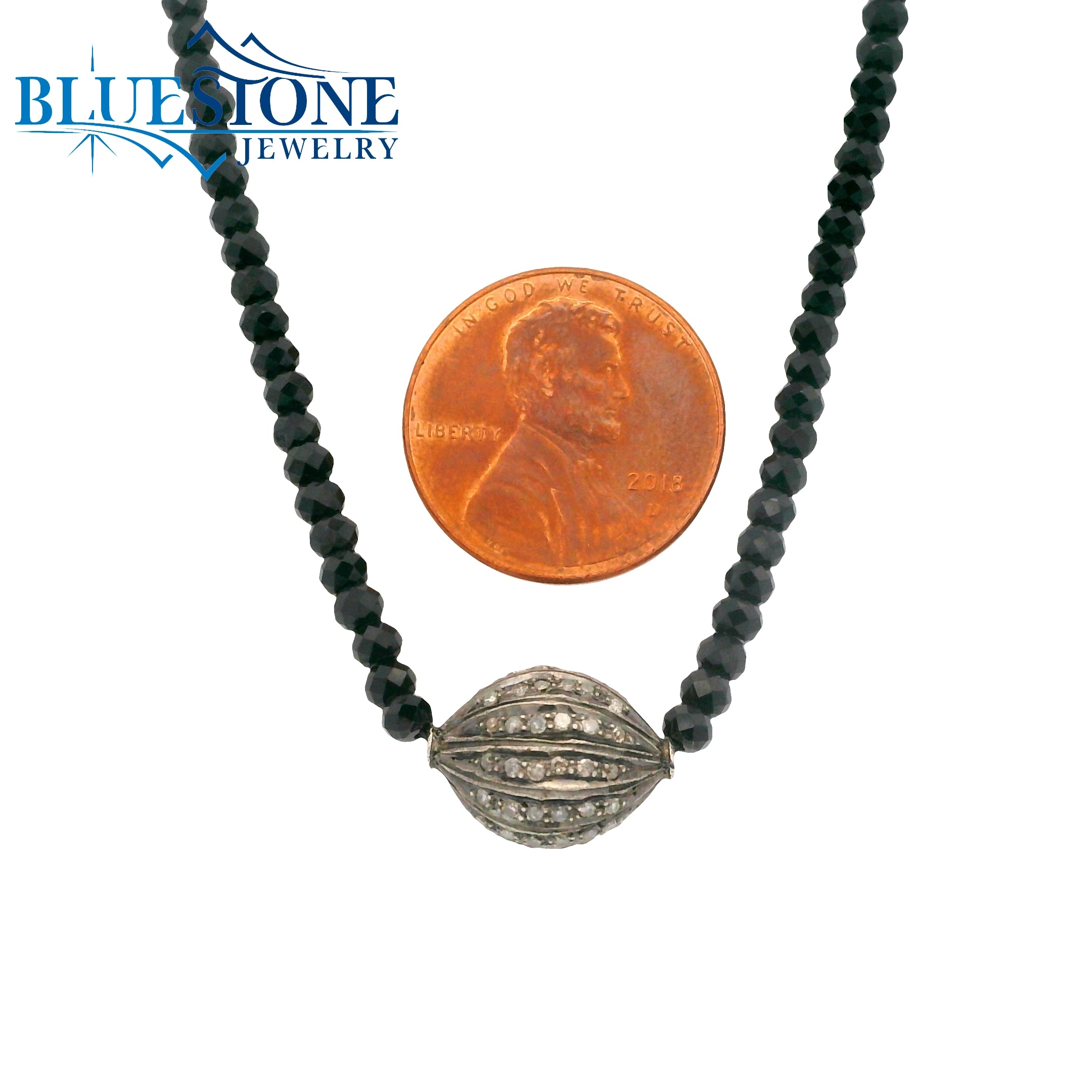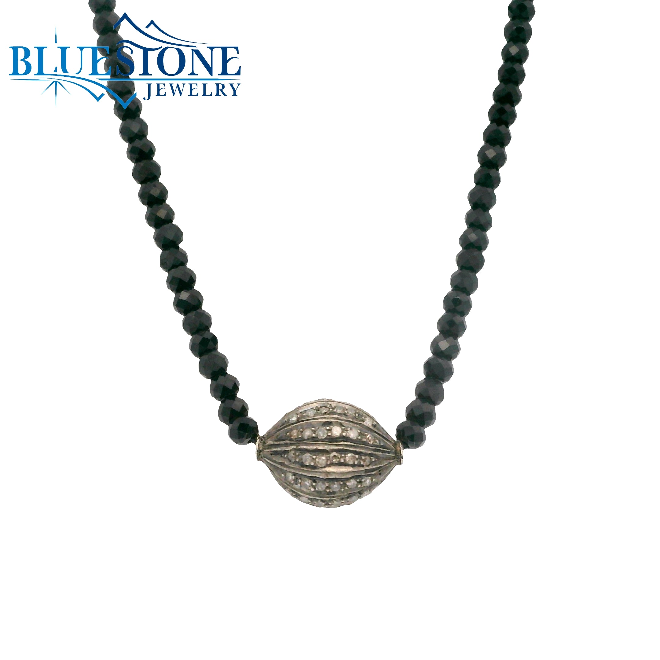 Black Spinel Beaded Necklace w/ One Diamond Bead - 16"