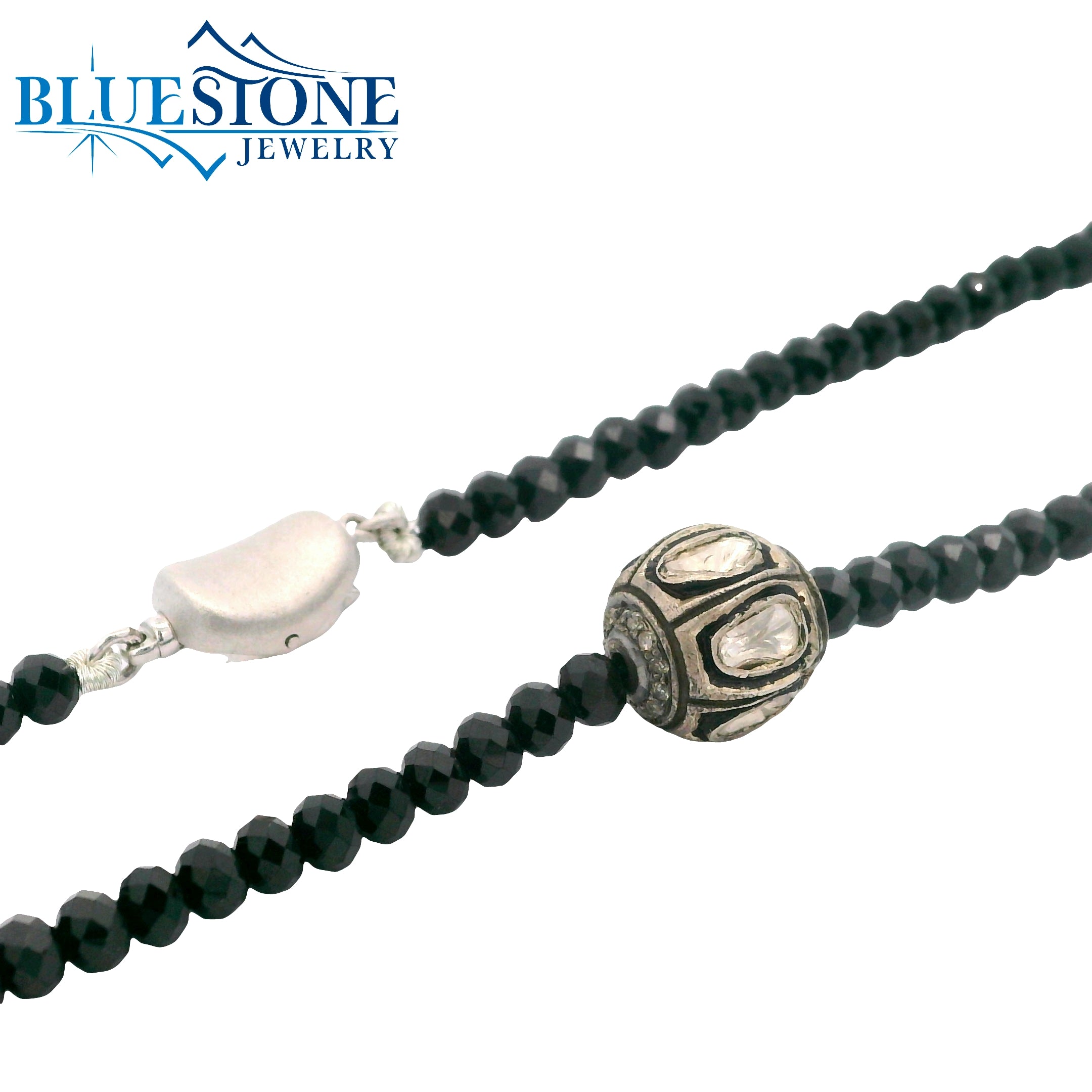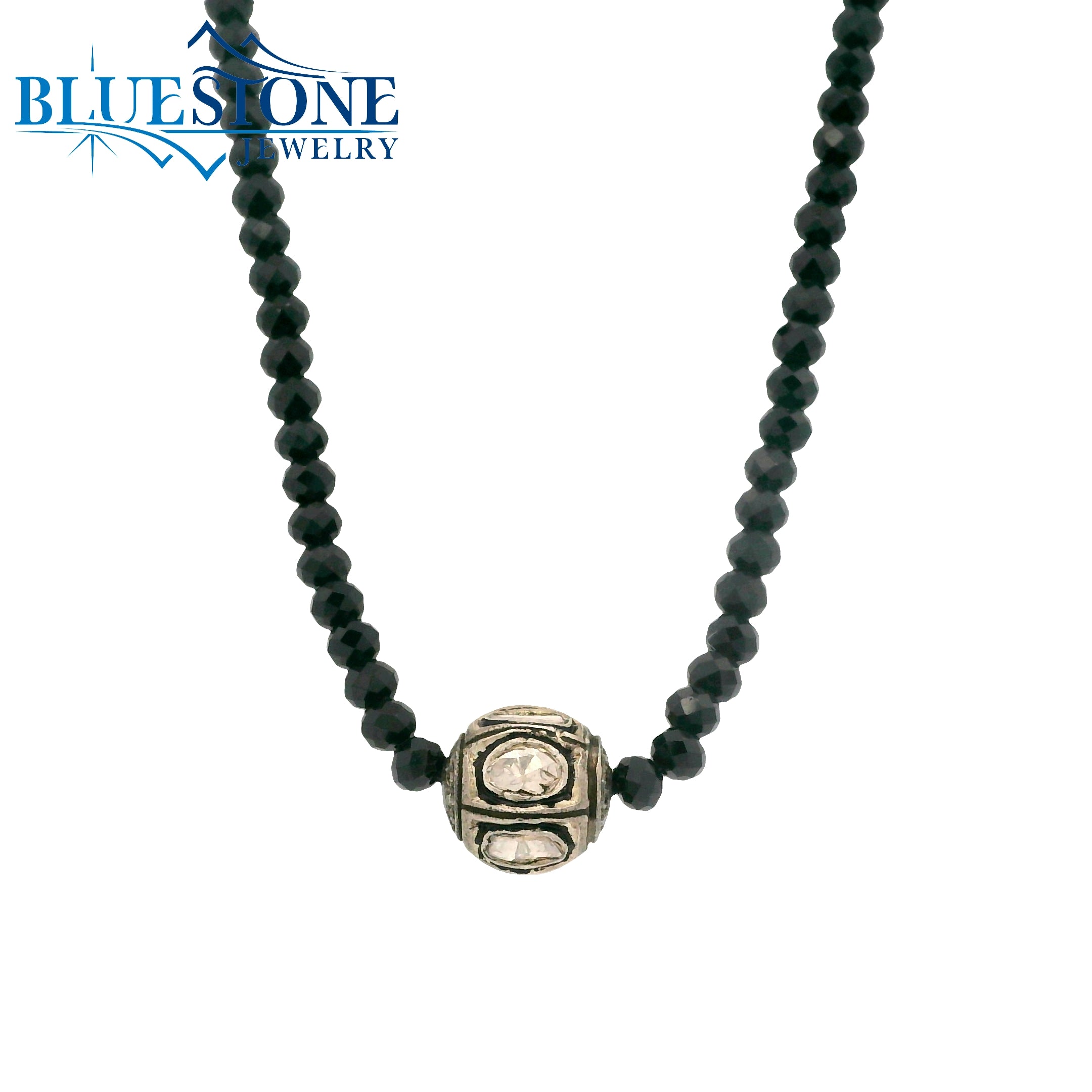 Black Spinel Beaded Necklace w/ One Diamond Bead - 17.5"