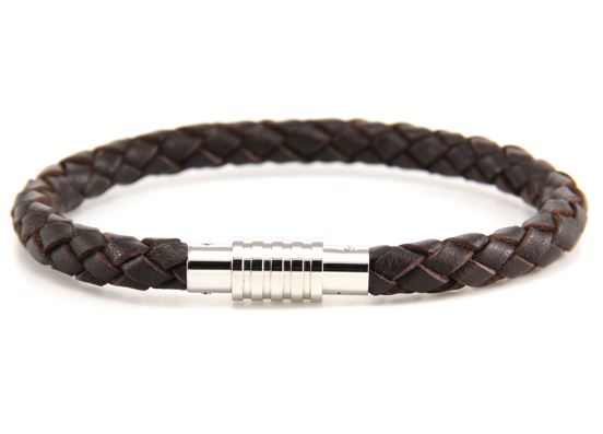 Brown Leather Bracelet with Steel Clasp. Small size measuring 7.5 inches (19cm).Inner clasp is magnetic for a strong hold while you spin the clasp closed for a tight and secure hold.