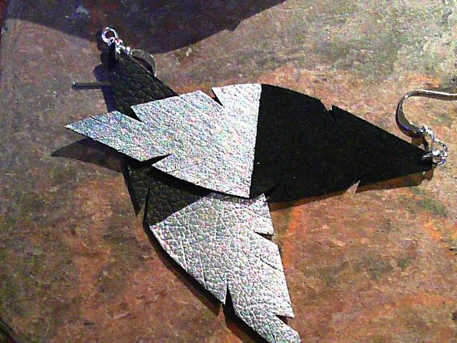 Demi Leather Feather Earrings with Silver Dipped design on black leather with silver ear wires