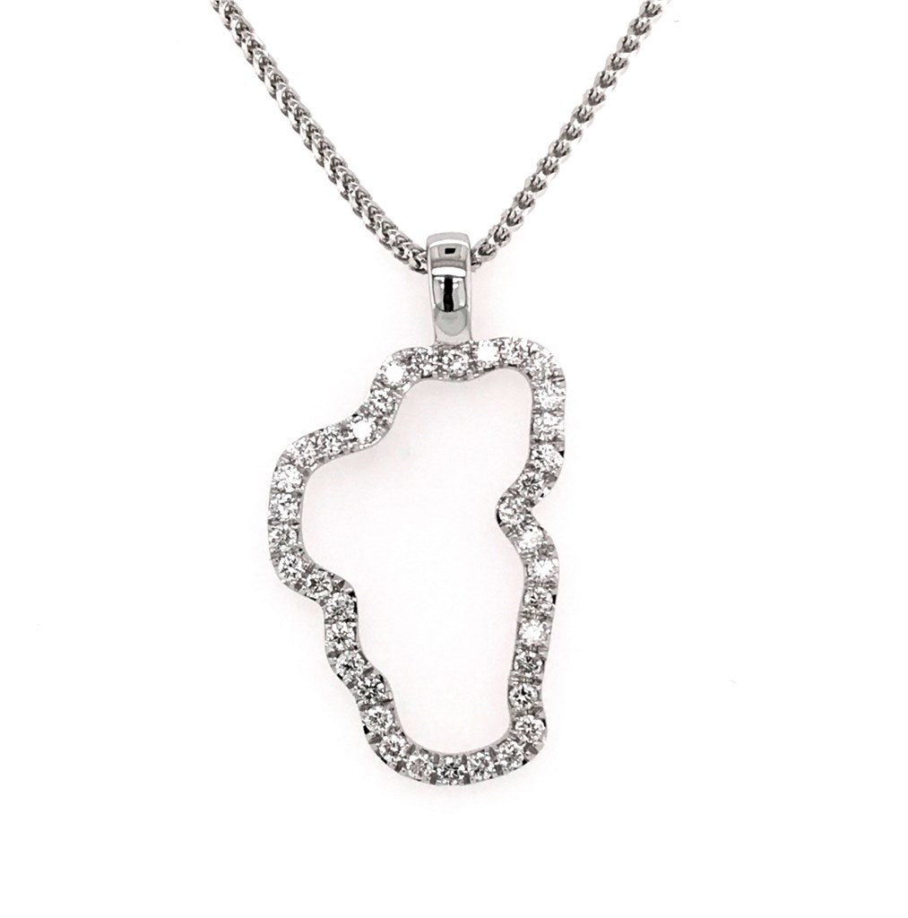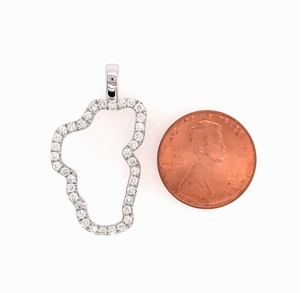 Extra Large 14 Karat White Gold Lake Tahoe Diamond Outline Pendant with 37 Round Diamonds at 0.72 Carats Total Weight of G Si1 Quality Diamonds.