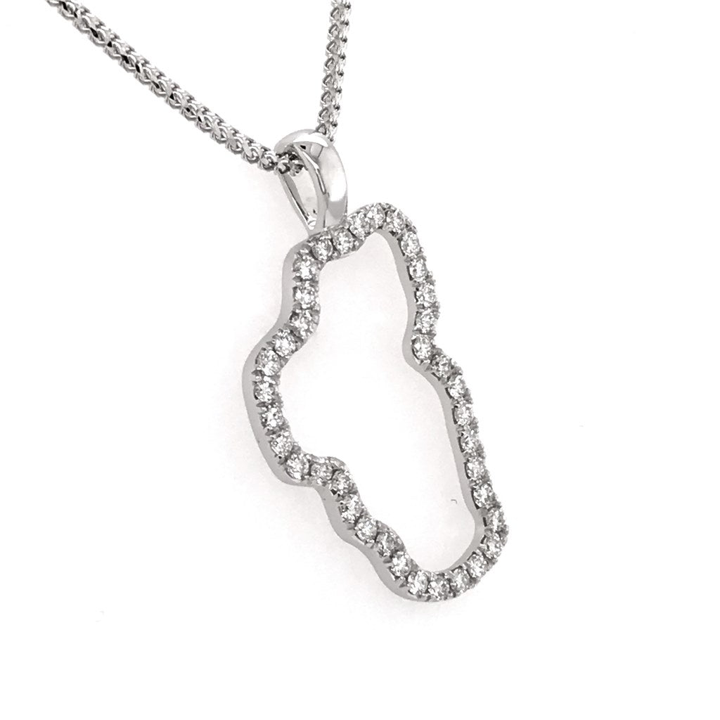 Extra Large 14 Karat White Gold Lake Tahoe Diamond Outline Pendant wit