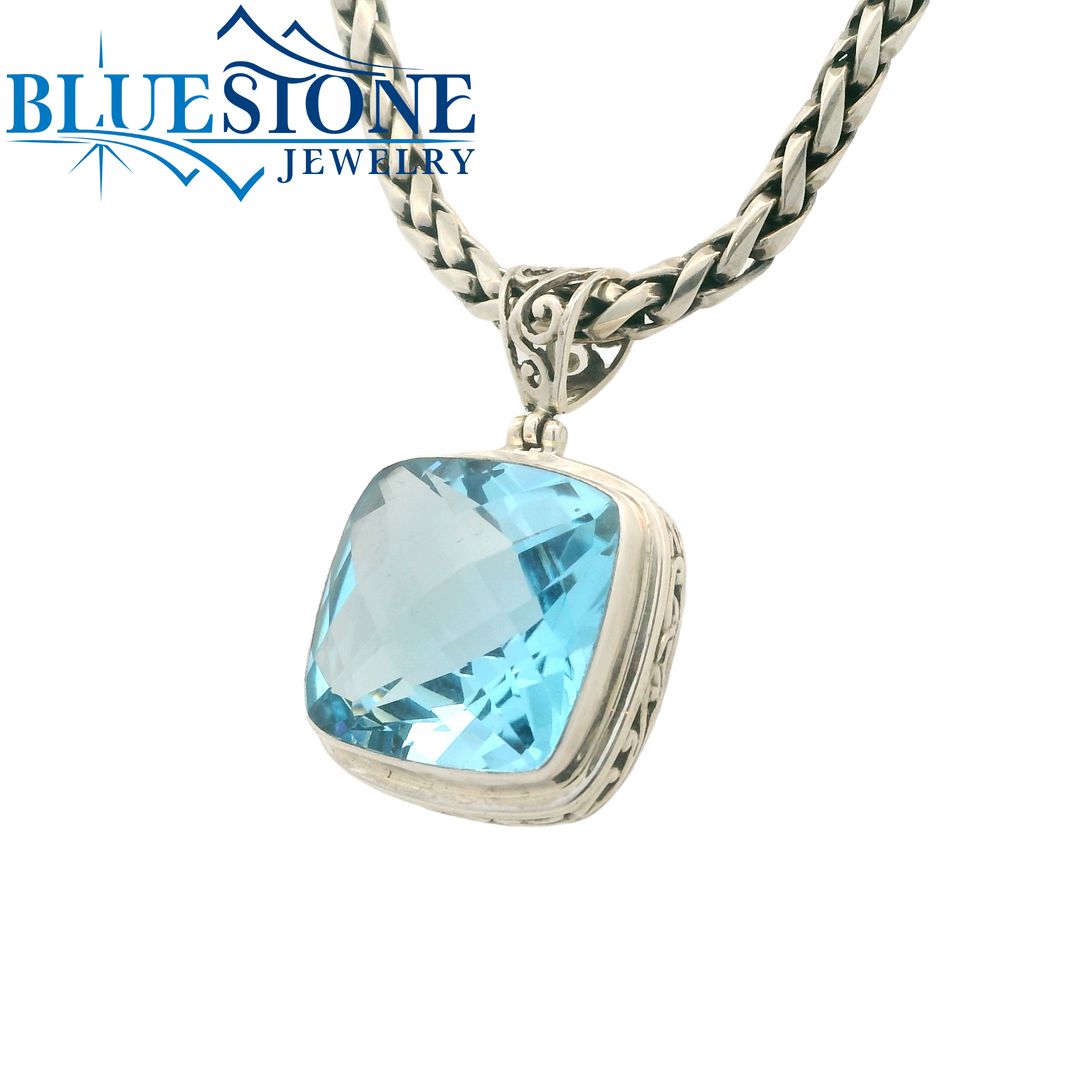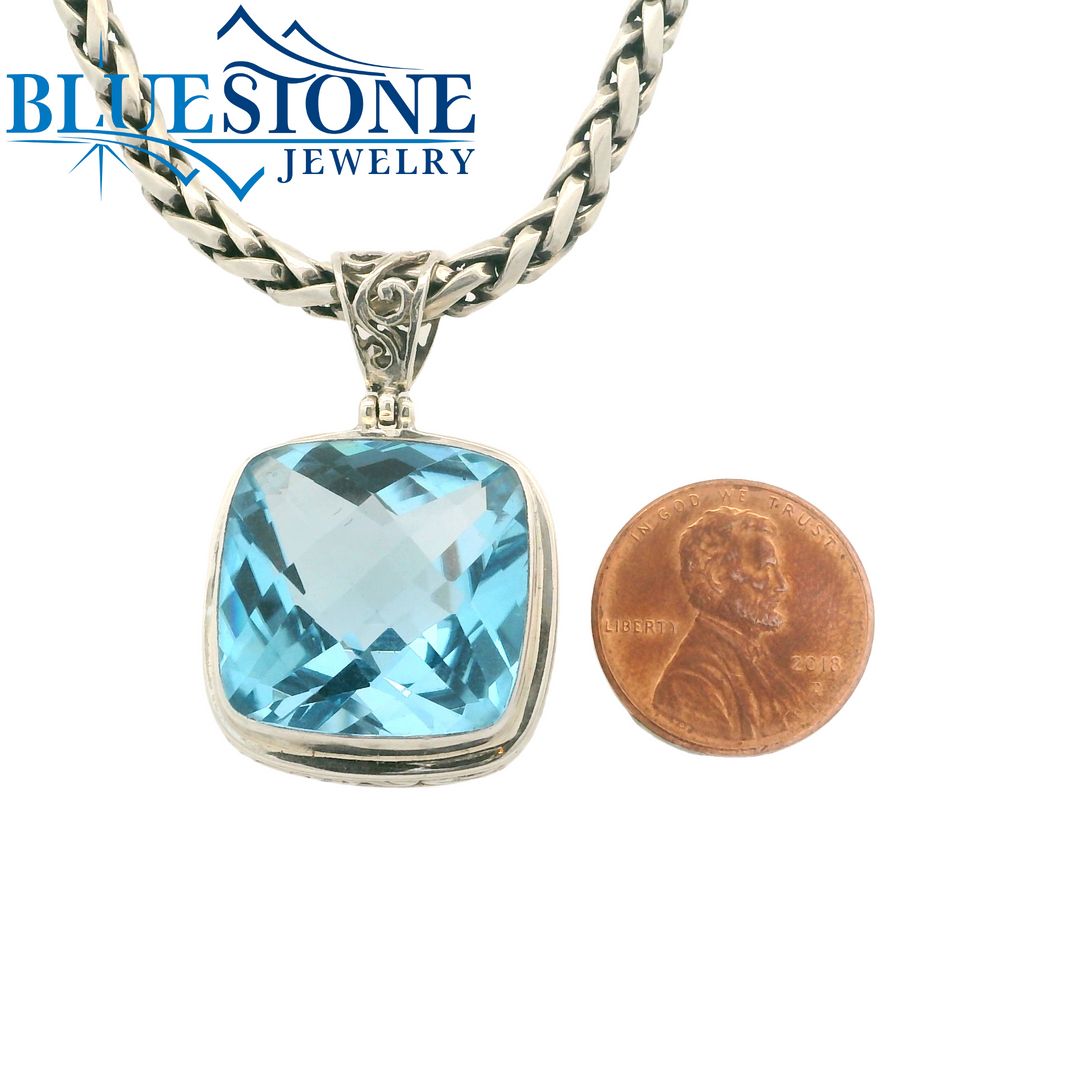 Extra Large Sterling Silver Dot Pendant with One Square Cushion Cut Blue Topaz. Pendant Comes on a 3.9mm Heavy Weight Sterling Silver Chain, 18 Inches in Length.Pendant Measures Approximately 38.1mm x 22.25mmLake Tahoe Designer