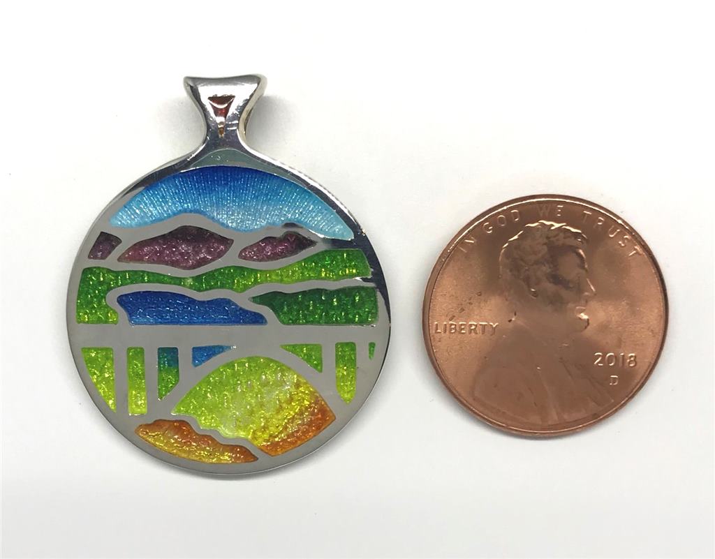 Fine Silver Enamel Truckee Pendant of Donner Lake & Rainbow Bridge in