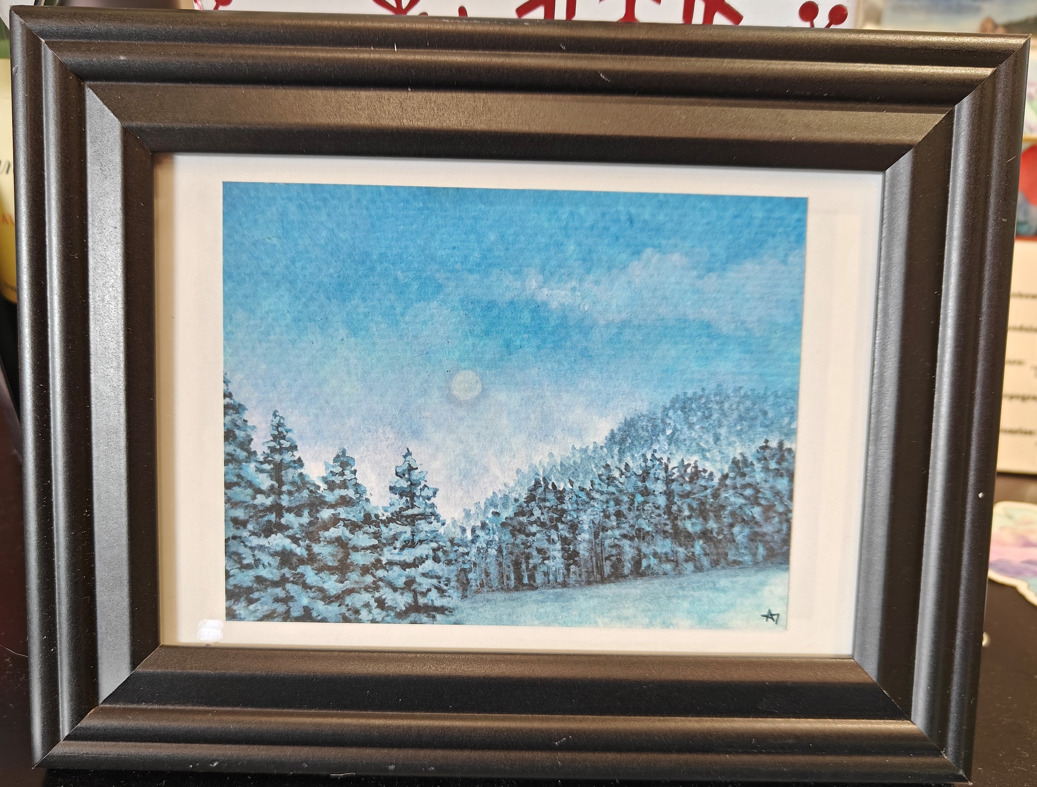 9 X 7 Inch Original Framed Watercolor Painting - "Winter Blues" by local Artist Alexandra Theiss