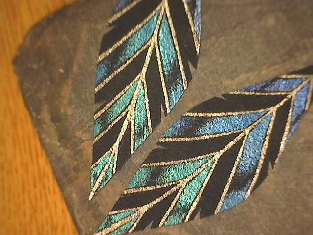 Gabriella Leather Feather Earrings on black leather with silver earring hooks