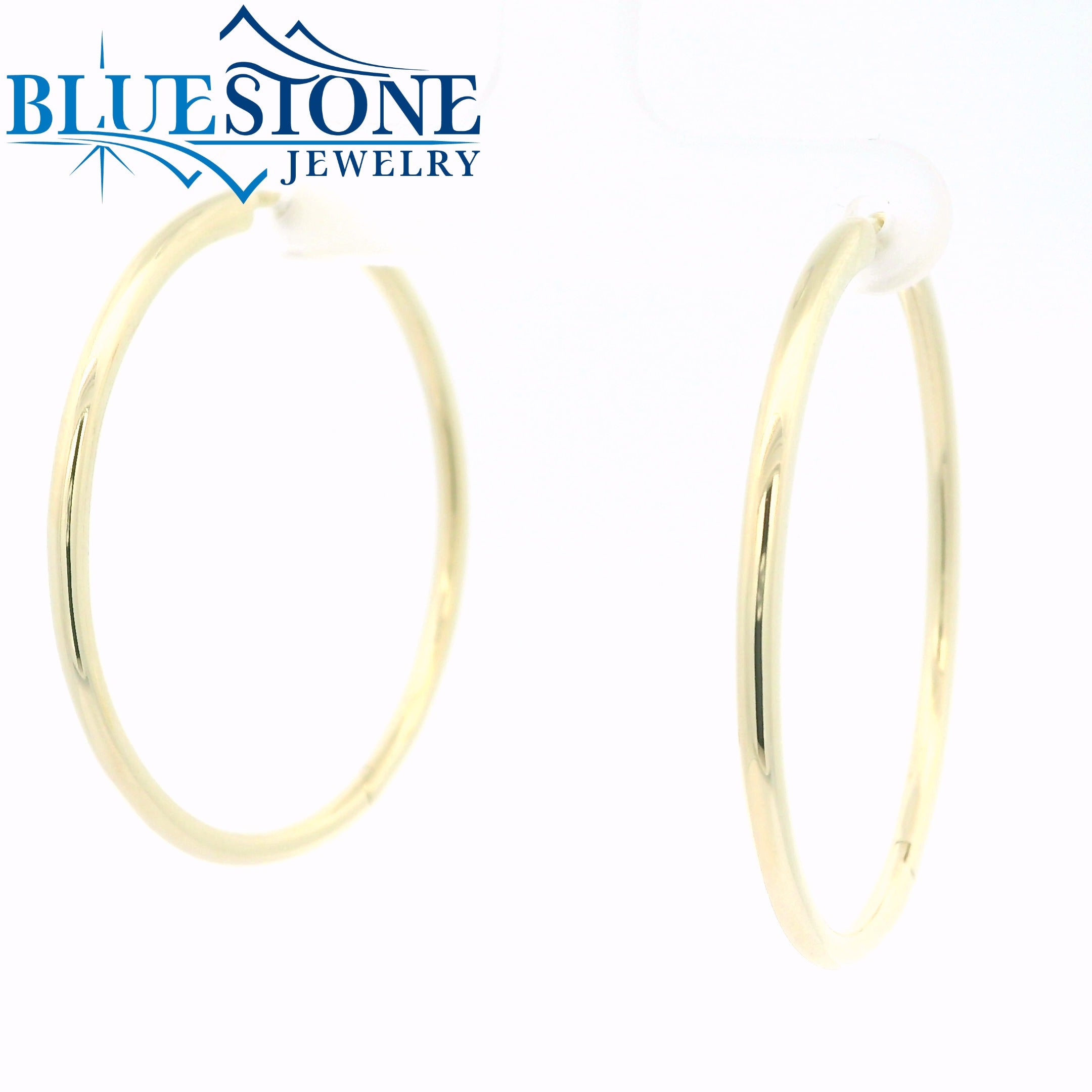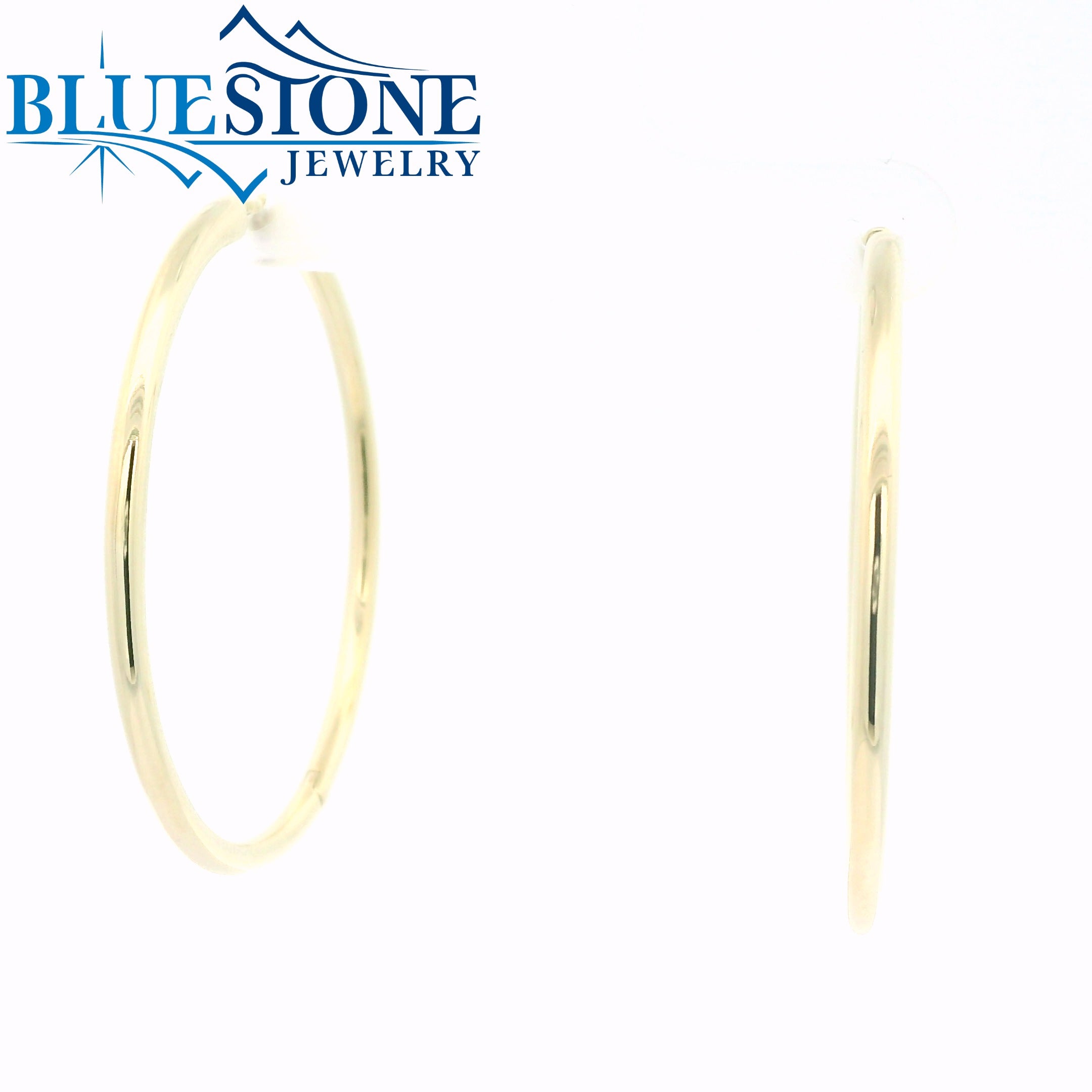 Large 10 Karat Yellow Gold Plated Sterling Silver Hoop Earrings. 2mm Wide. 1.5" Long.