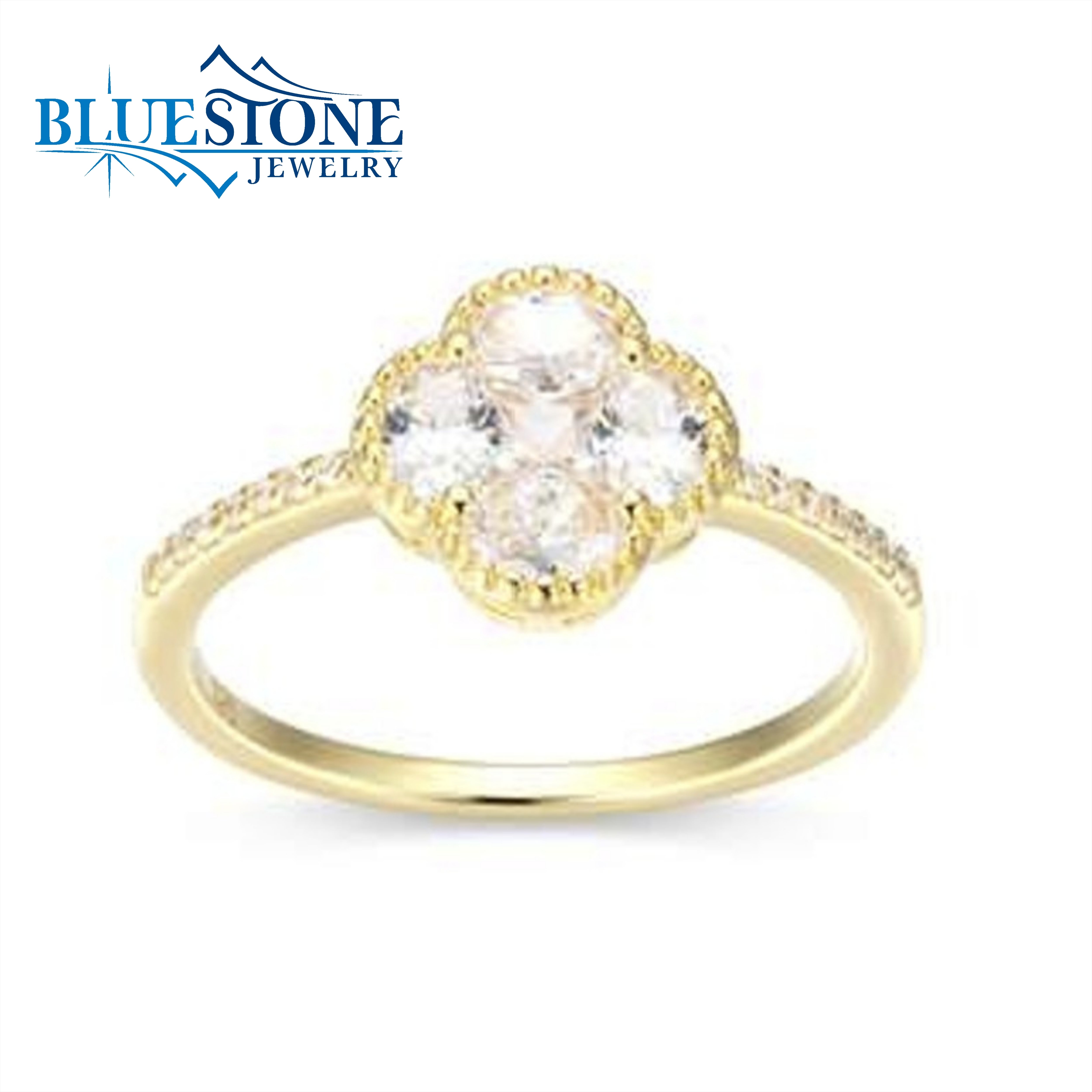 14 Karat Yellow Gold Plated Sterling Silver Clover Ring with 5 Cubic Zirconia. Ring Size 7.
