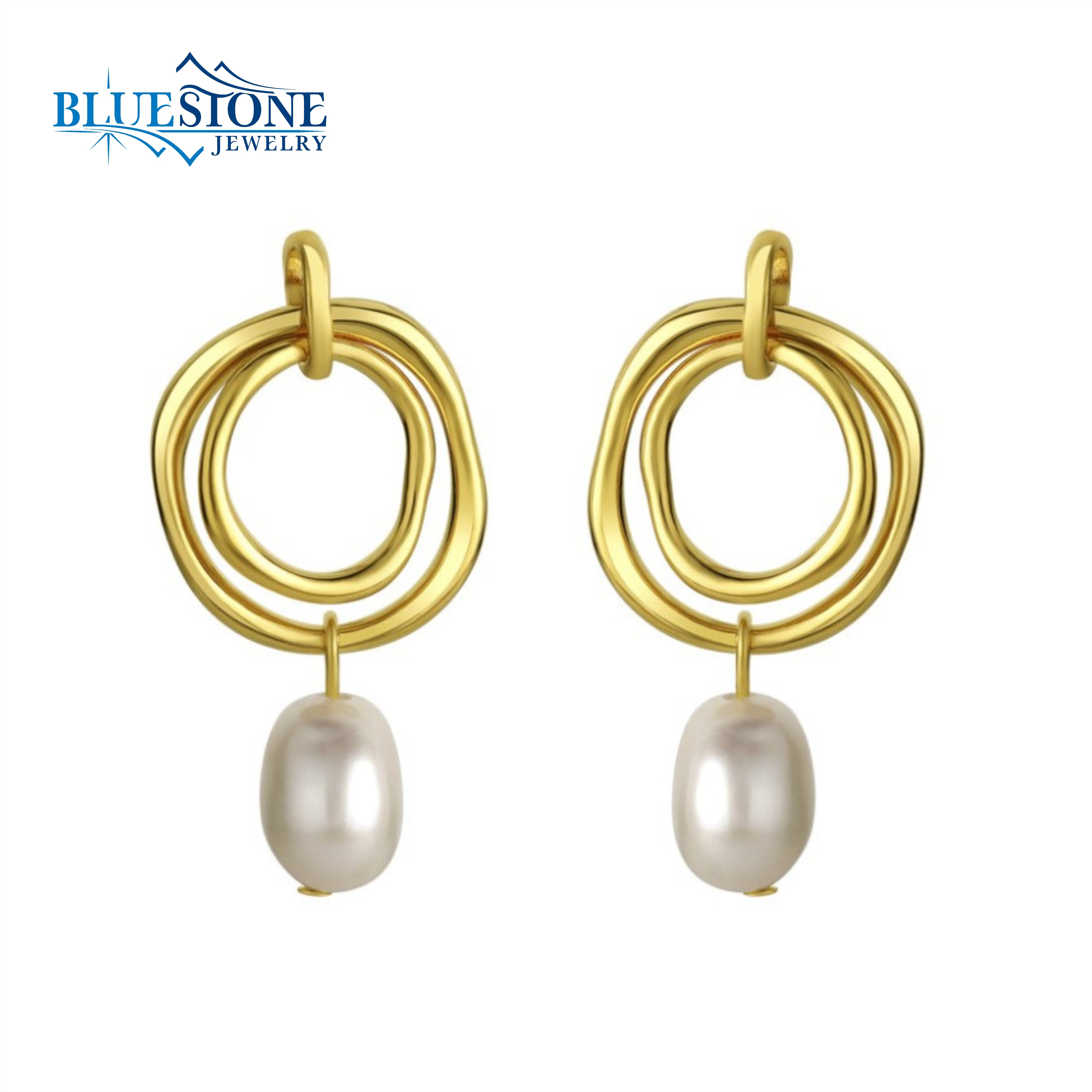 14 Karat Yellow Gold Plated Sterling Silver Earrings with Two Freshwater Pearls.