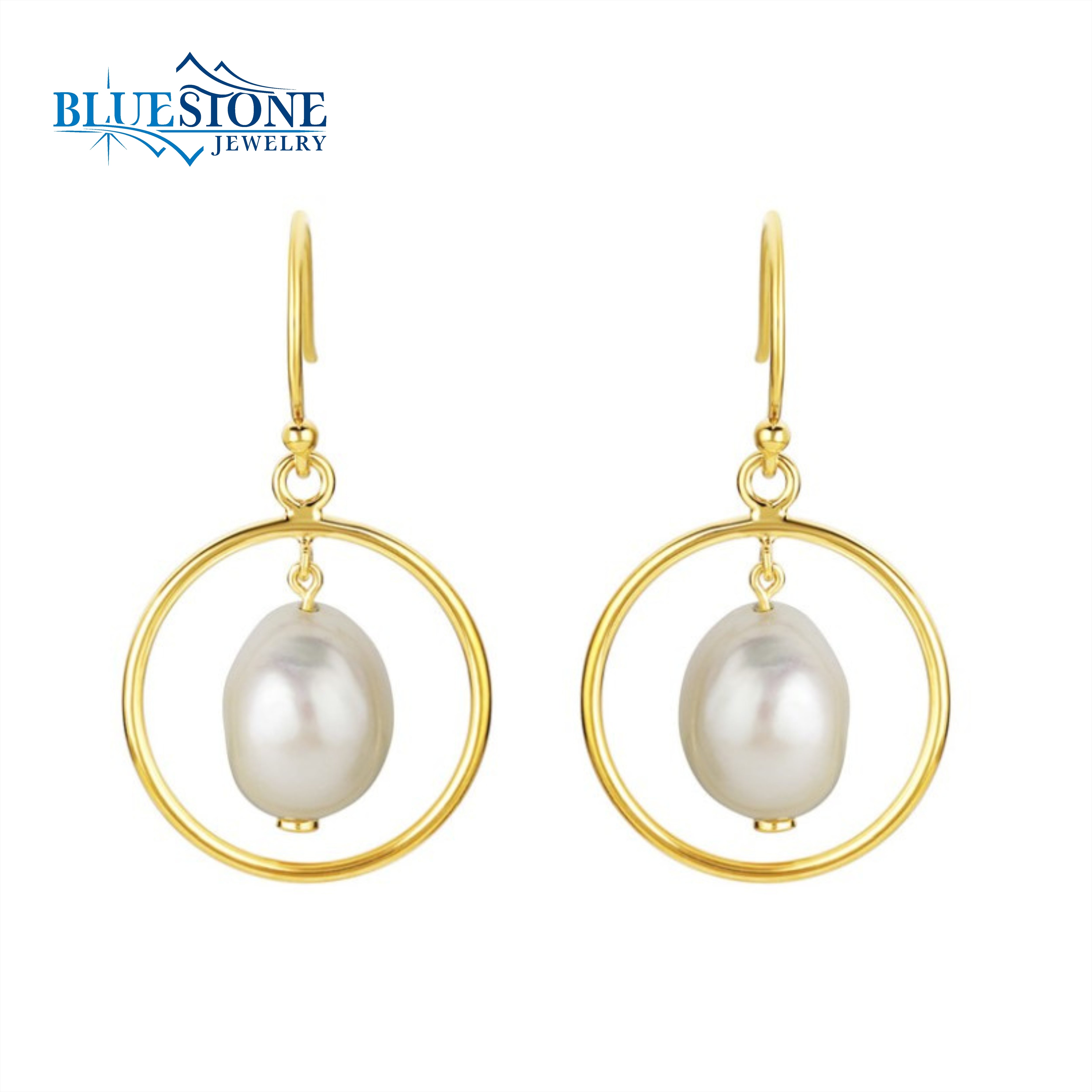14 Karat Yellow Gold Plated Sterling Silver Earrings with Two Freshwater Pearls.