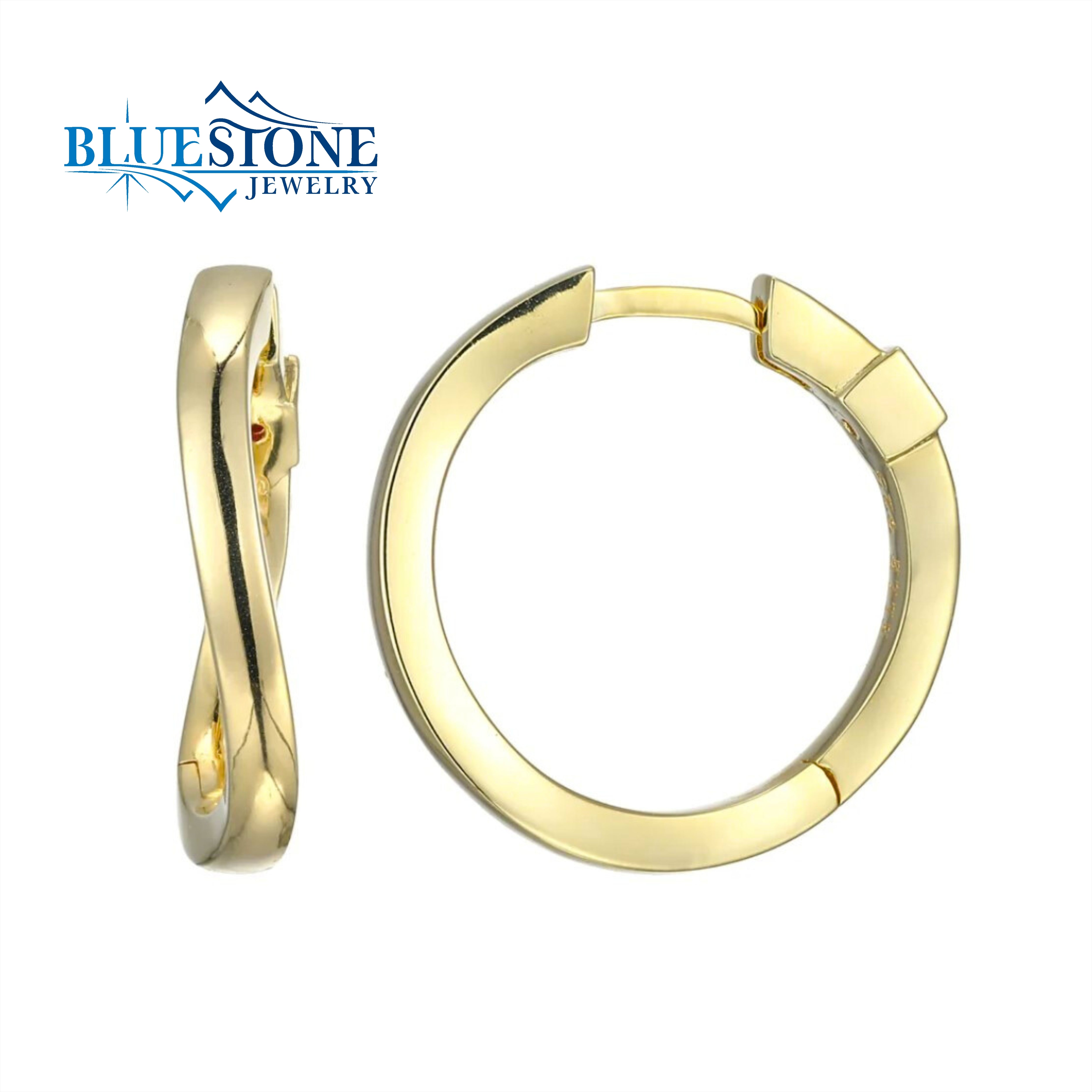 Sterling Silver 14 Karat Yellow Gold Plated Huggy Hoop Earrings Featuring Two Hidden Round Created Rubies which represent inner beauty, inner peace & inner strength. Measure Approximately 3/4" Wide.