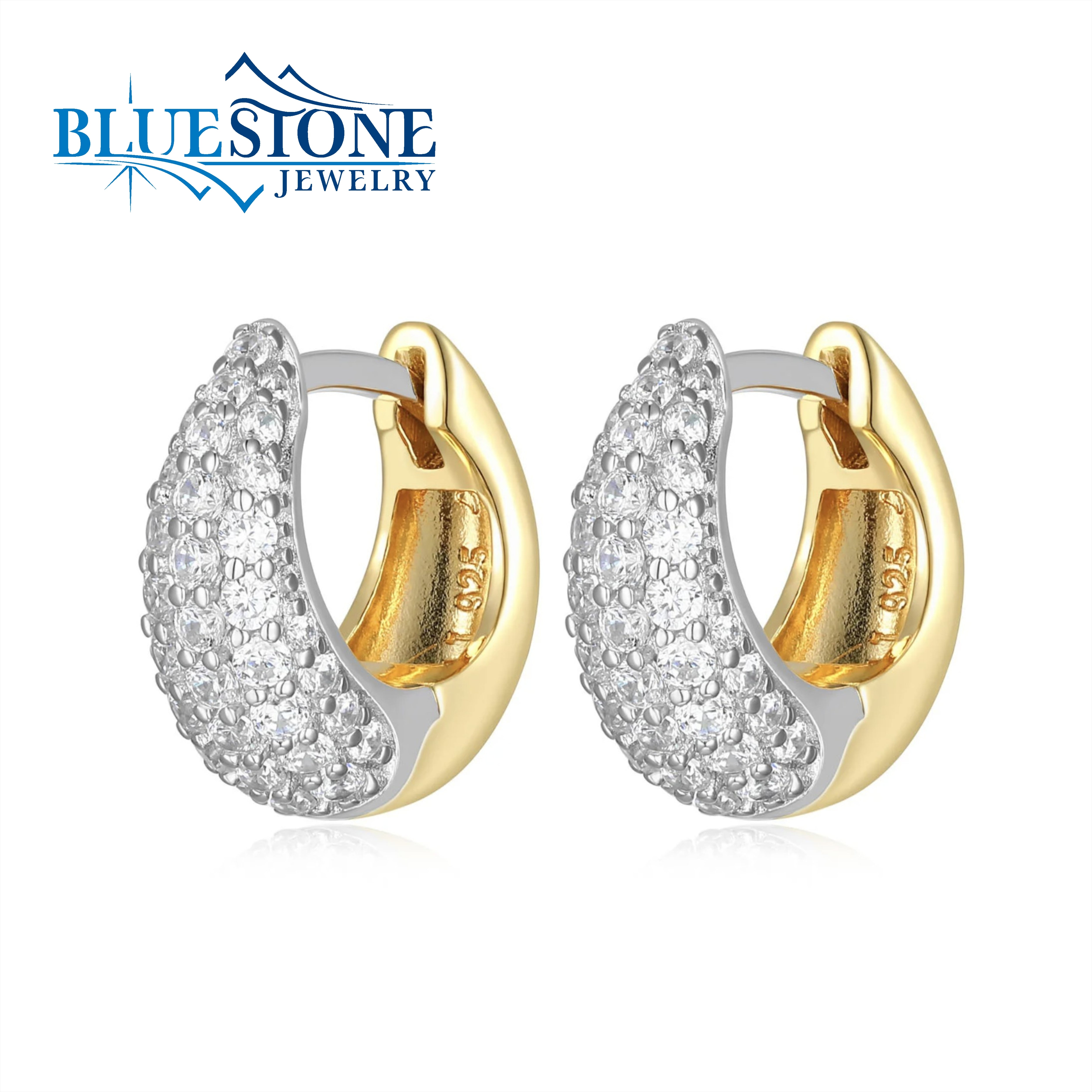 Gold Plated Sterling Silver Huggy Earrings with Pave Set Cubic Zirconia. Measure 6mm x 10mm.