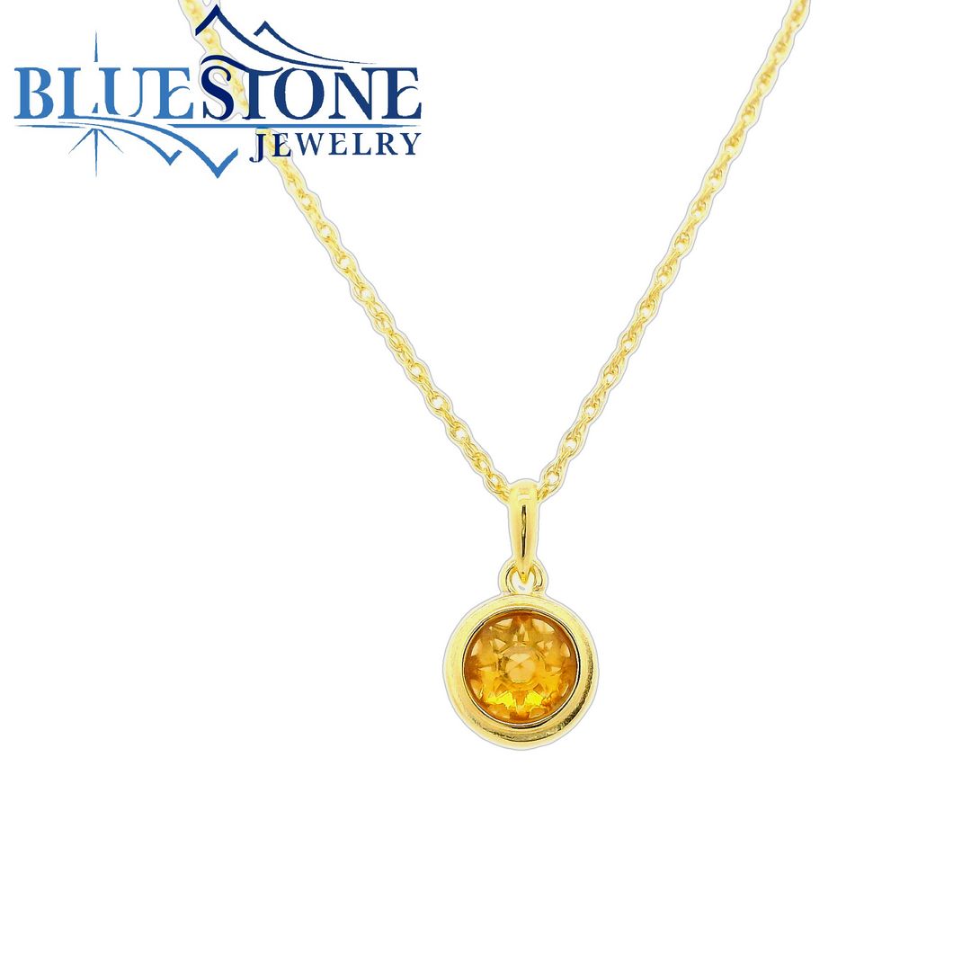 Sterling Silver 14KT Plated Bezel Set Necklace With A 6mm Round Citrine Gemstone.Length is 16", Plus An Additional 2". Total Length is 18".