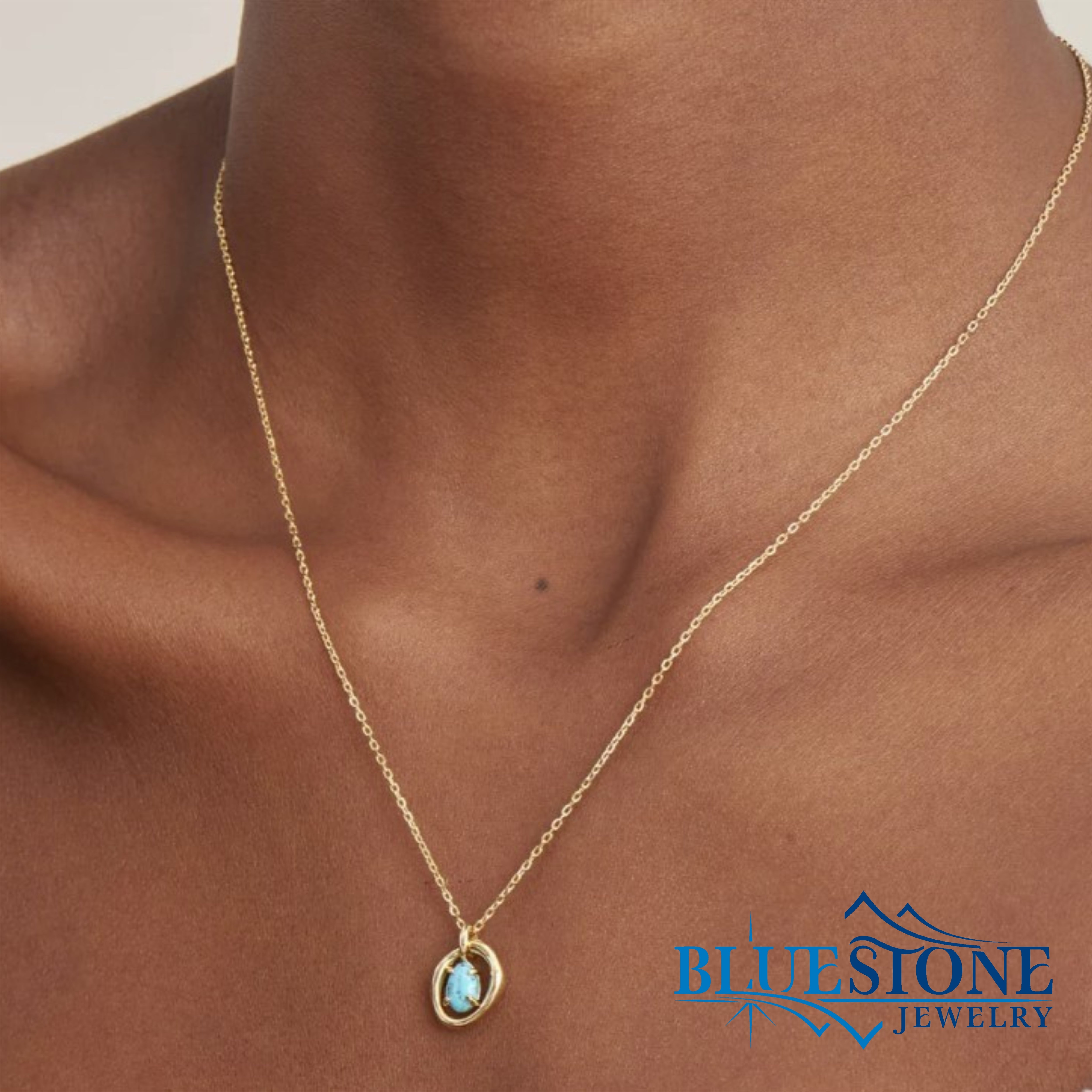 Sterling Silver with 14 Karat Yellow Gold Plating Necklace with One 4mm x 6mm Turquoise. Measures 20 inches long. Can be clasped at shorter lengths.Stone Appearance May Vary from Image.