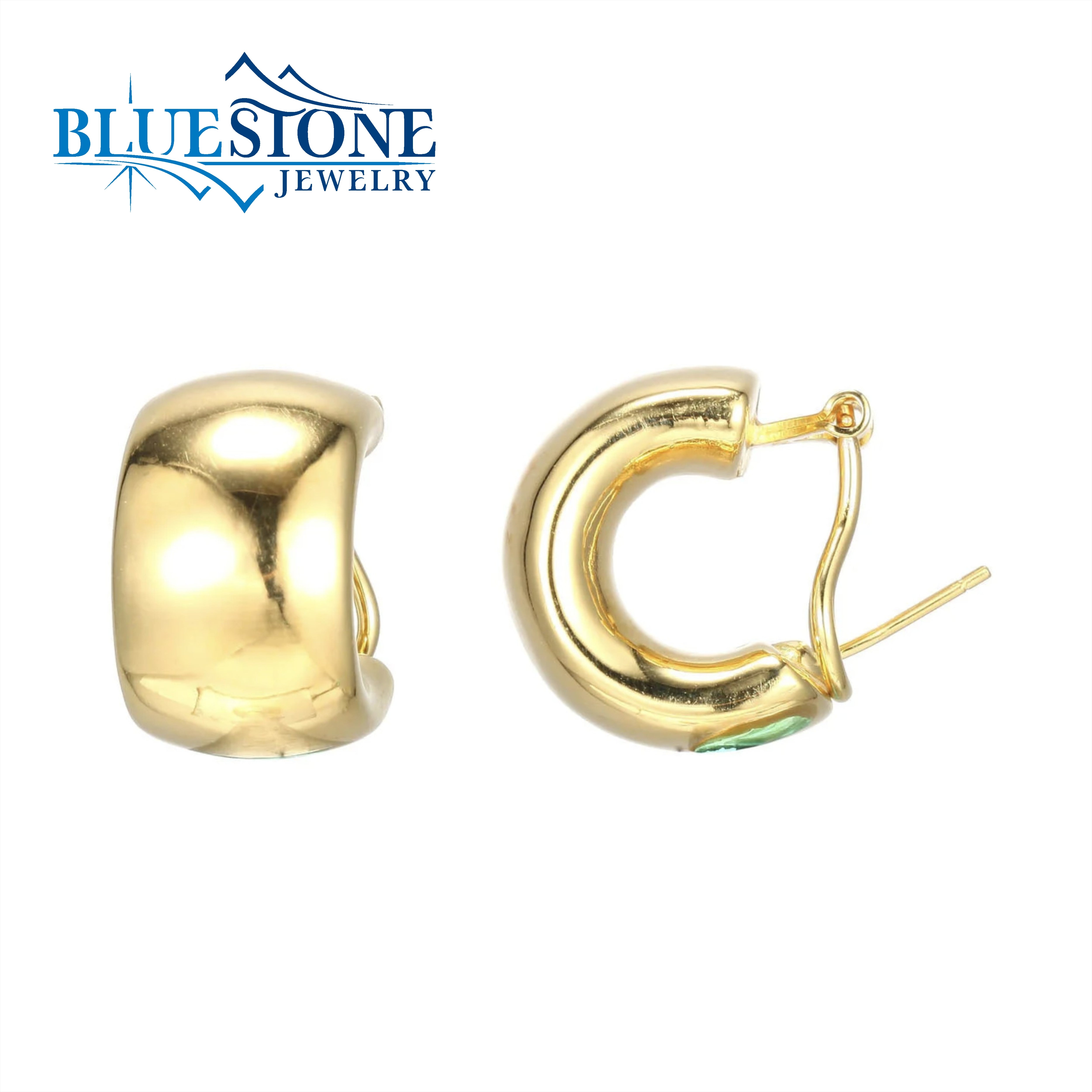 10 Karat Yellow Gold Plated Sterling Silver Omega Clip Hoop Earrings. Measure Approximately 1/2 Inch Wide by 3/4 Inch Long.