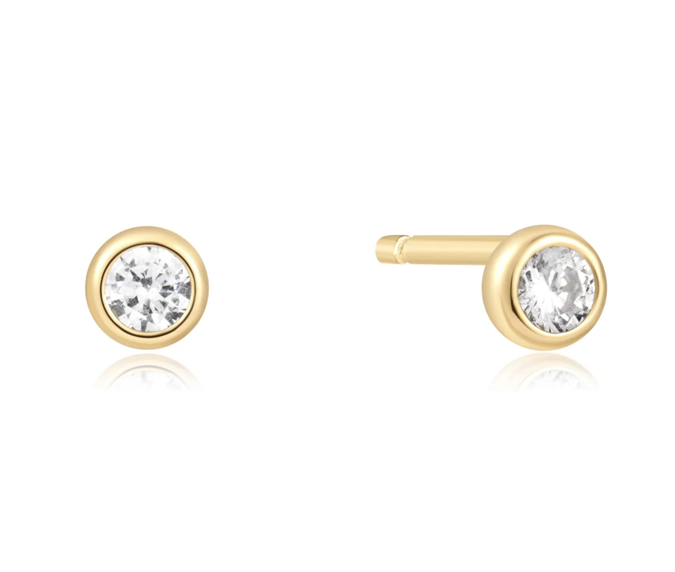 Gold Plated Solitaire Cubic Zirconia Stud Earrings
