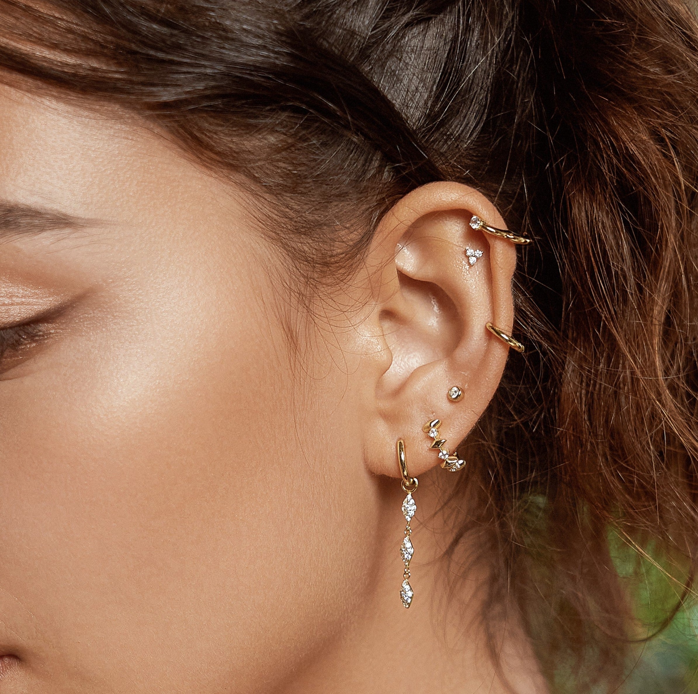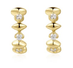Sterling Silver Rhodium with 14KT Yellow Gold Plated Sparkle Huggie Hoop Earrings with Cubic Zirconia Gemstones. Measure 1/4 Inch.