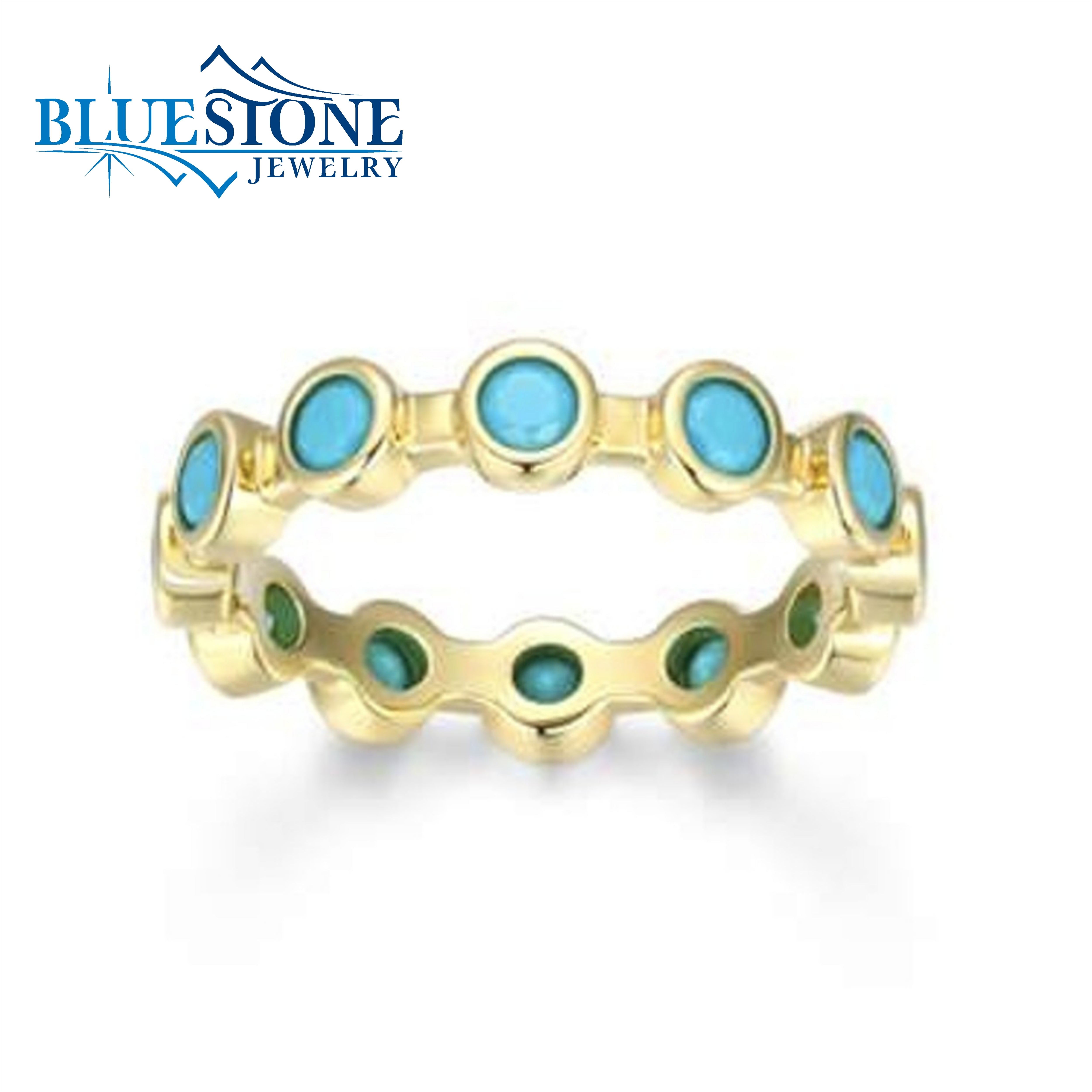 14 Karat Yellow Gold Plated Sterling Silver Ring with 12 3mm Round Turquoises. Ring Size 6.