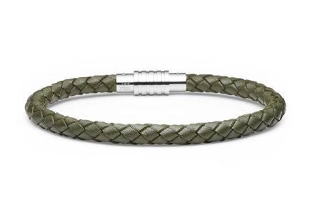Green Leather Bracelet with Steel Clasp. Medium size measuring 8.25 inches (21cm).Inner clasp is magnetic for a strong hold while you spin the clasp closed for a tight and secure hold.